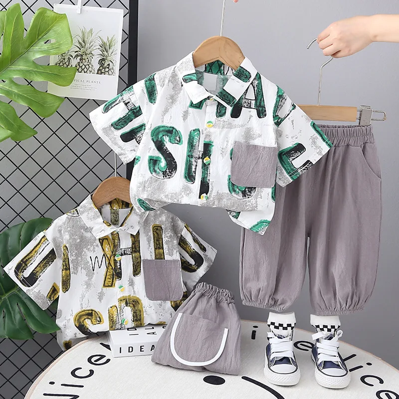 Boys Summer New Short-sleeved Children Clothing Children Thin Shirt Lapel Casual Pants Shirt Two-piece Set
