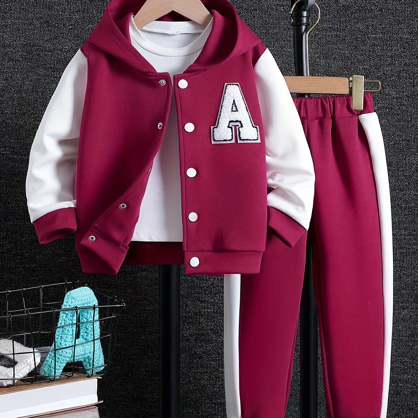 Autumn Girls' Hooded Patchwork Jacket+casual Pants Two-piece Set