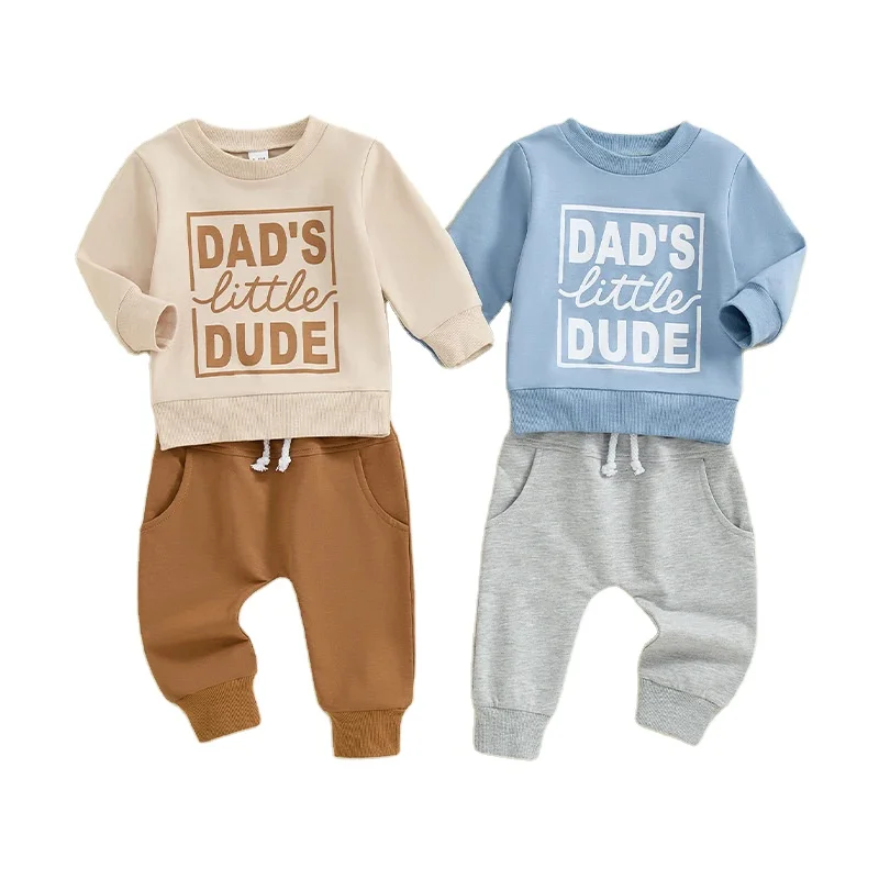 New Baby Boys 2 Pcs Clothing Set Long Sleeve Letter Printed T-shirt + Solid Pants Cotton Outfits for Baby Boys