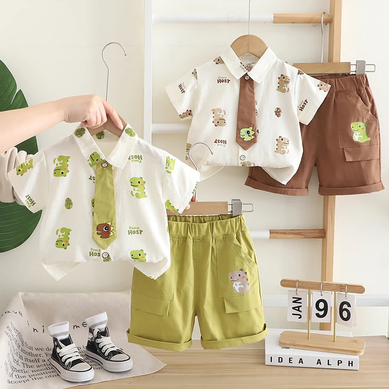 Children's Clothing Boys Little Boy New Short-sleeved Front Button Down Shirt Shorts Two-piece Set