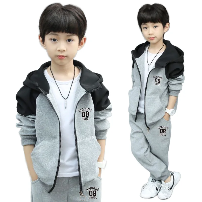 Boys' Woolen Hoodie Set New Fashionable Autumn Kids' Clothing for 5-14 Years Great Quality With Printed Pattern