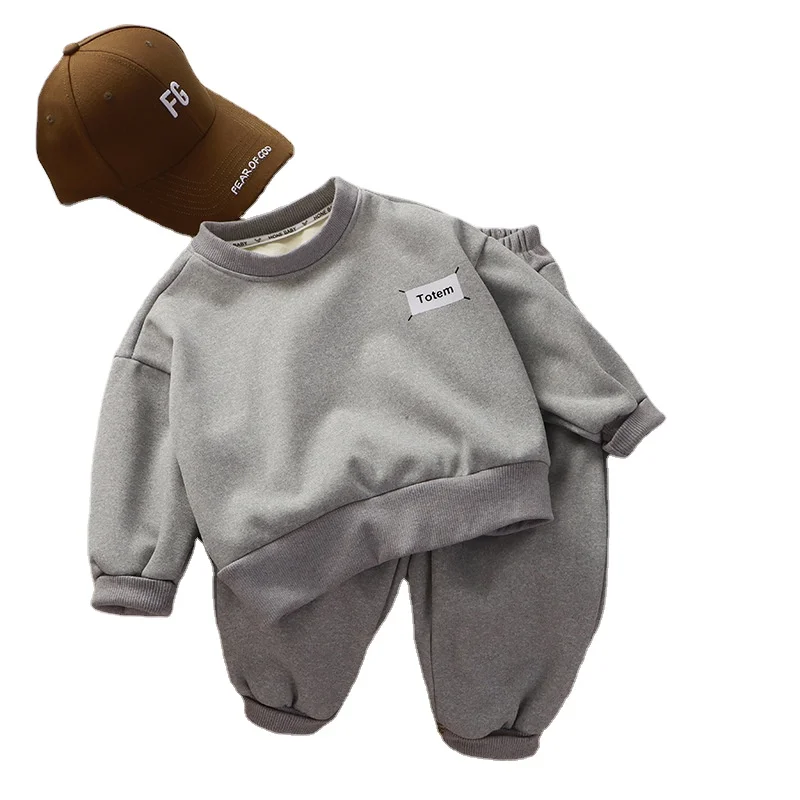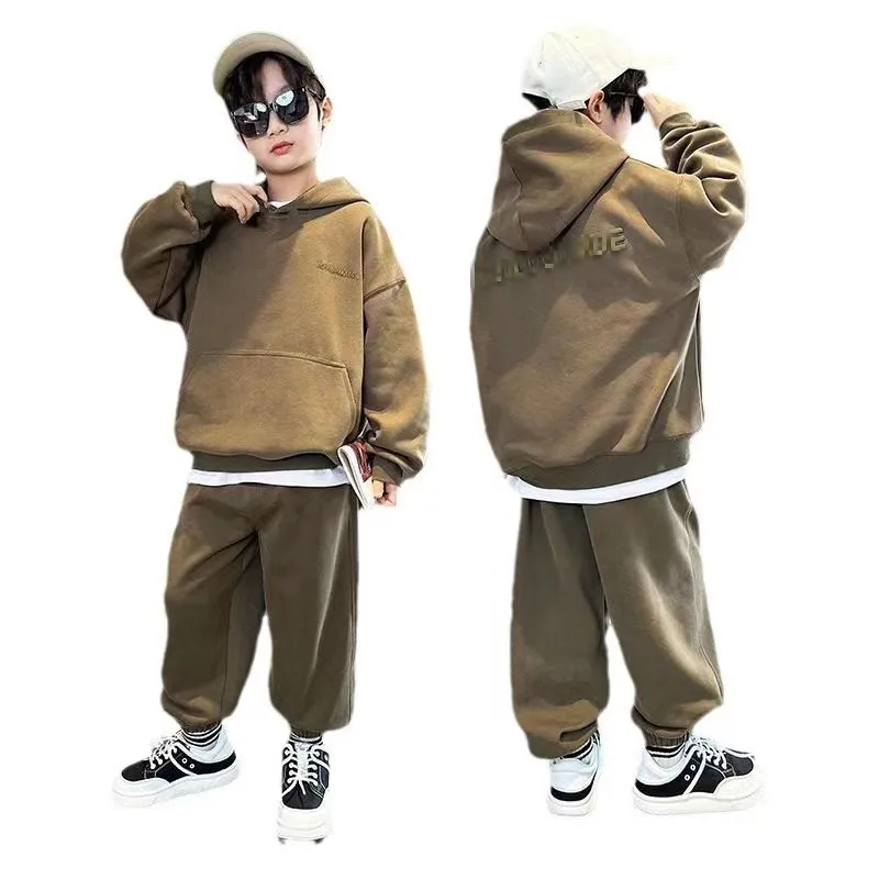 2026 New Boys' Spring and Autumn Collection Plus Fleece Warm Hoodie and Two-Piece Set Woolen Fabric for Kids' Winter Clothing