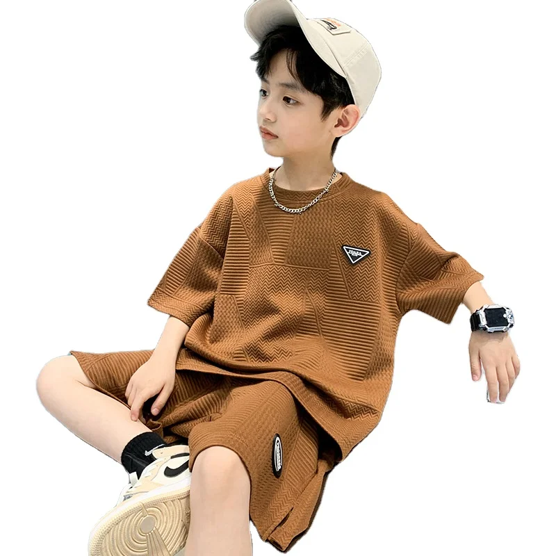 2026 Summer Children Sports Suits Short Sleeve Round Neck Solid Color Pullover Shorts 2Pcs Teen Boys Clothing Sets