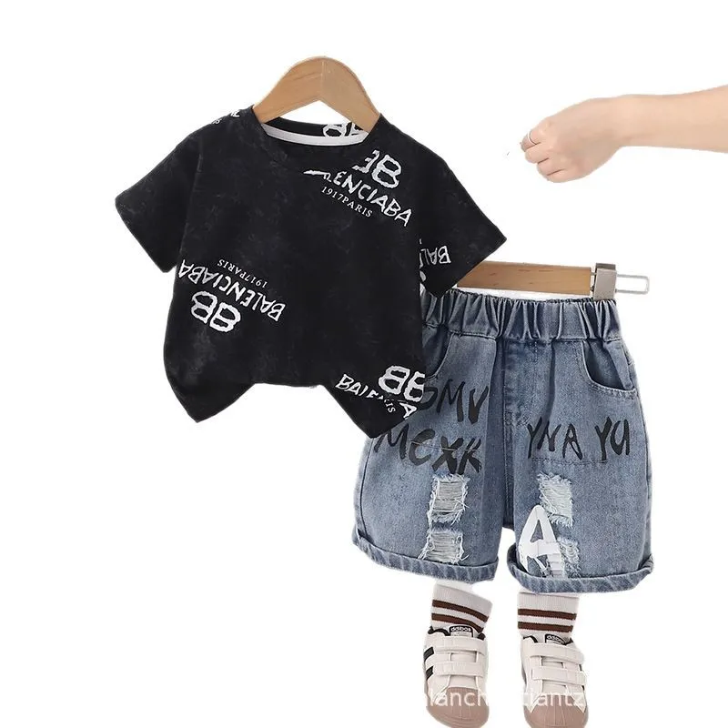 2026 New Summer New Boys Short-sleeved 1-5 Years Old Casual Two-piece Children's Clothing Foreign Trade Wholesale