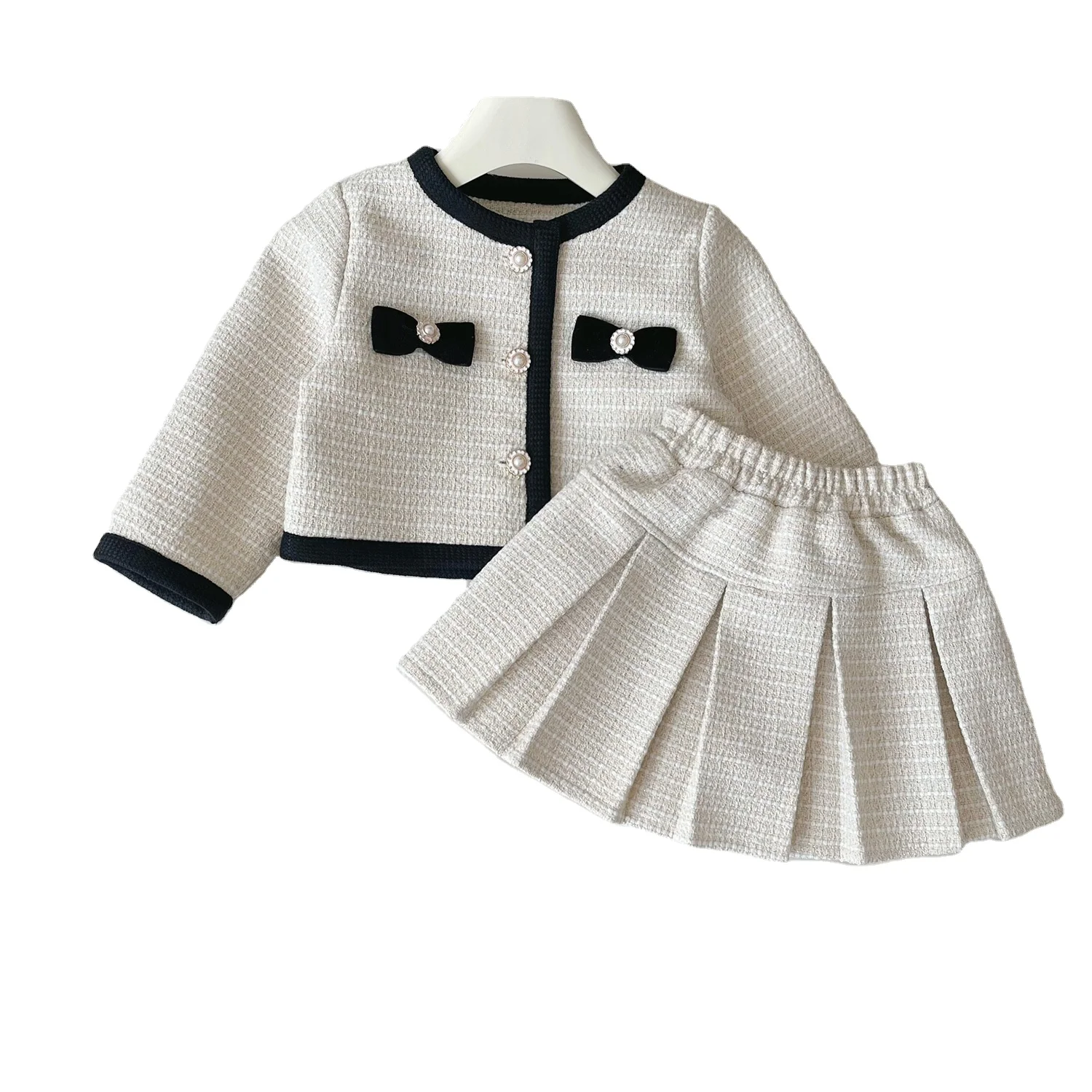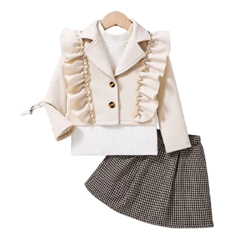 2026 Autumn Winter Children Girl Sets Fashion Ruffled Jacket White T Shirt Plaid Skirt Wholesale Kids Clothing