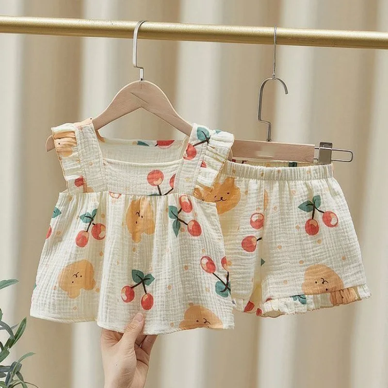 2026 Pajamas for Girls Children Summer Thin Vest Shorts Set Children Little Girl Baby Going Out Home Clothes Factory Wholesale