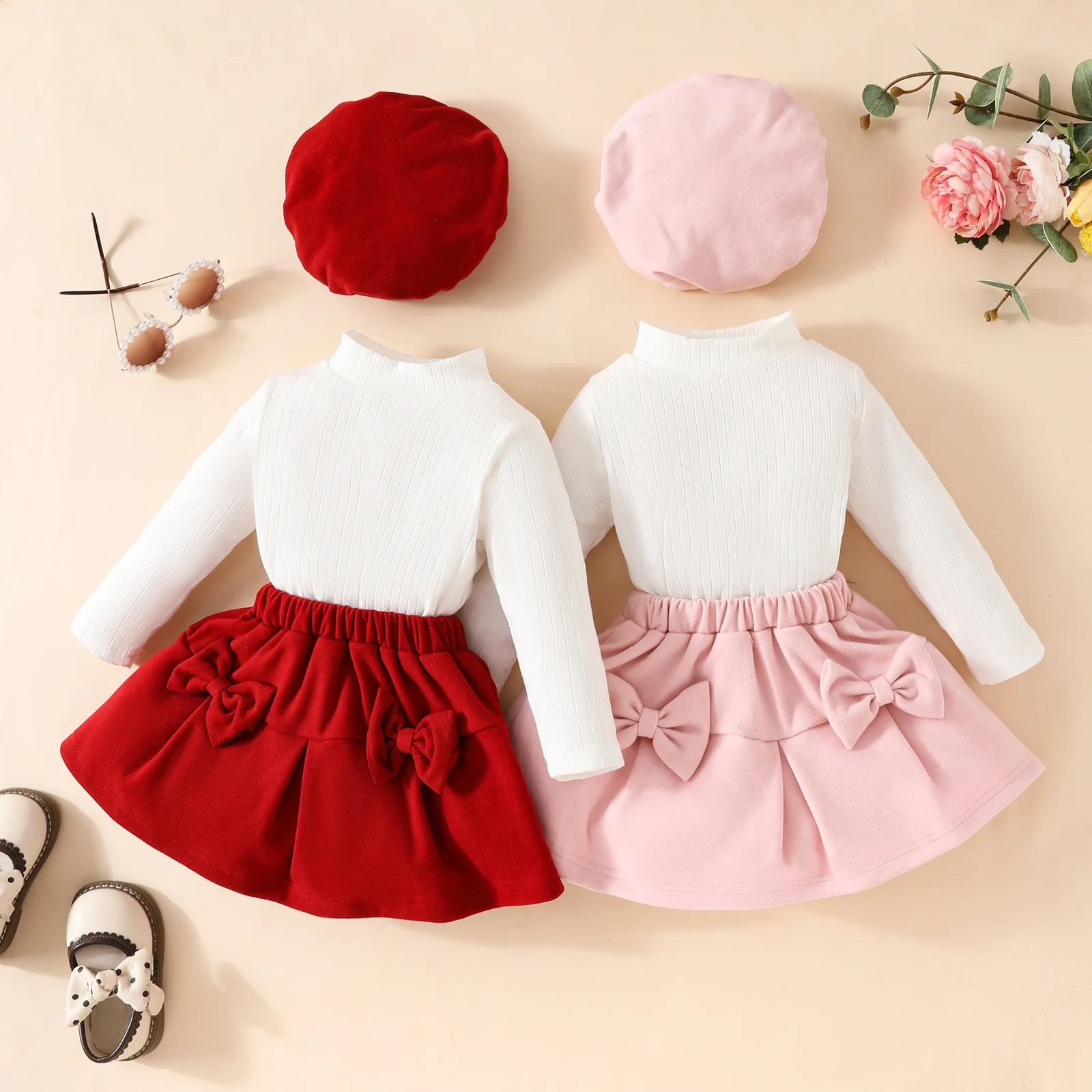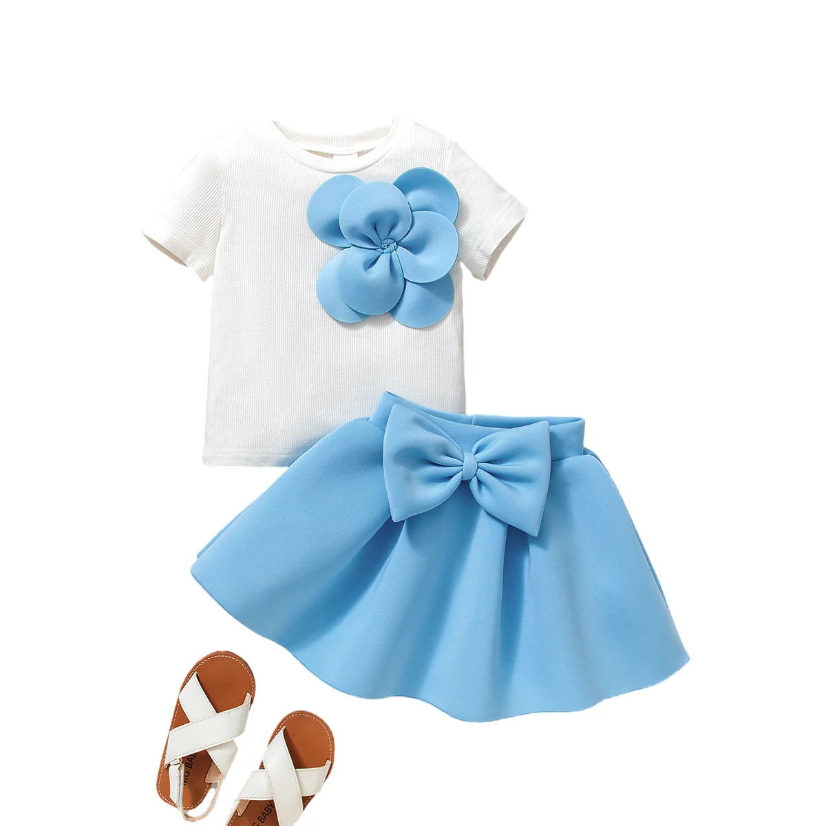 2026 Baby Girl Flower Set Girls' Clothing Summer Short Sleeve T Shirt and Bow Skirt 2 Piece Cute Toddler Girl Party Dress Sets