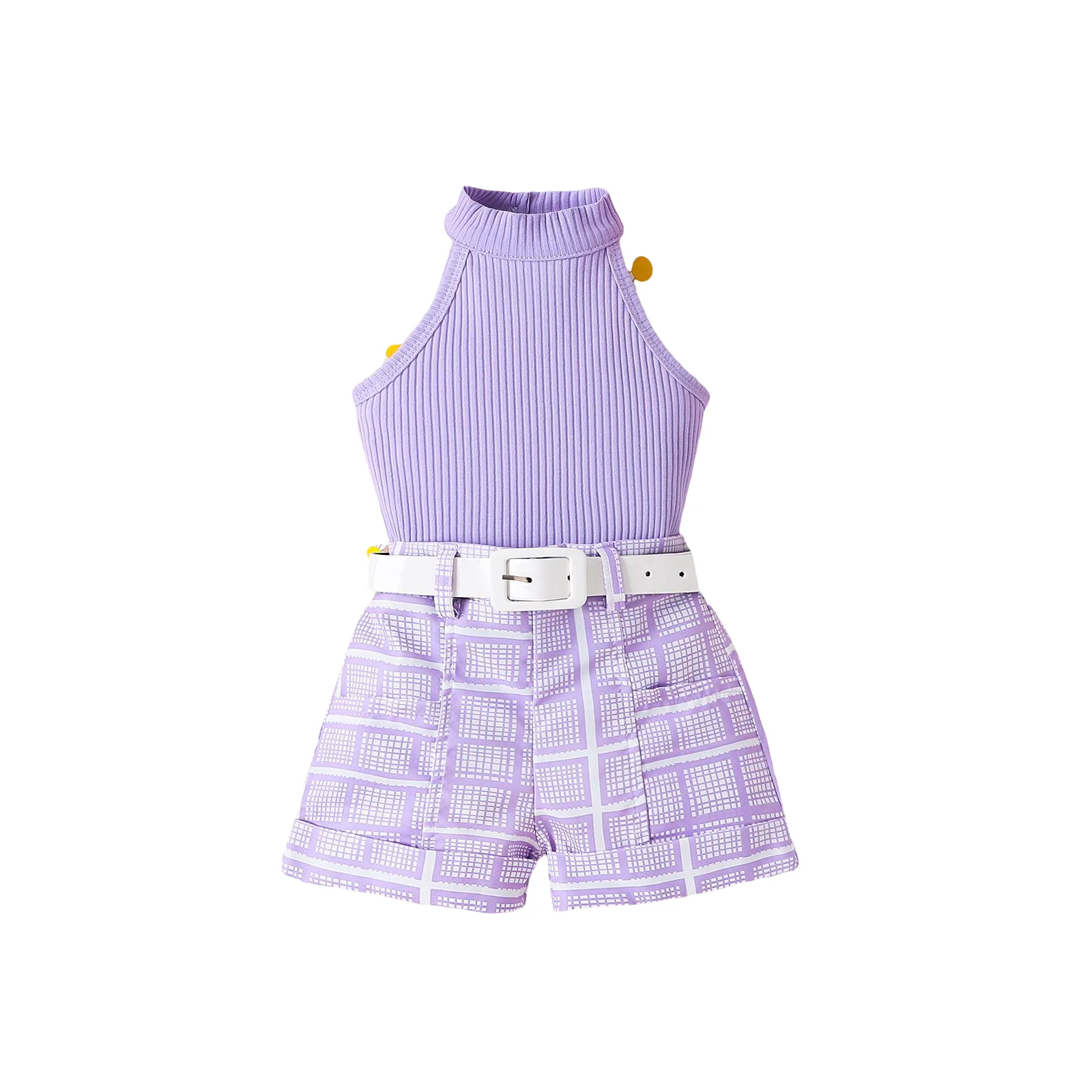 2026 Girls Cute Cotton Vest Top & Shorts Set New Solid Pattern Western Style Summer Casual Wear