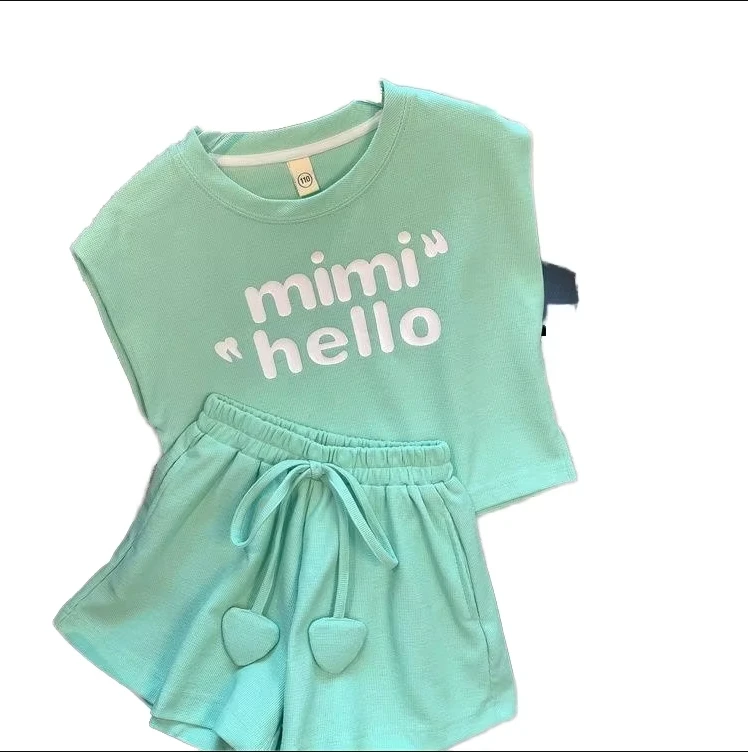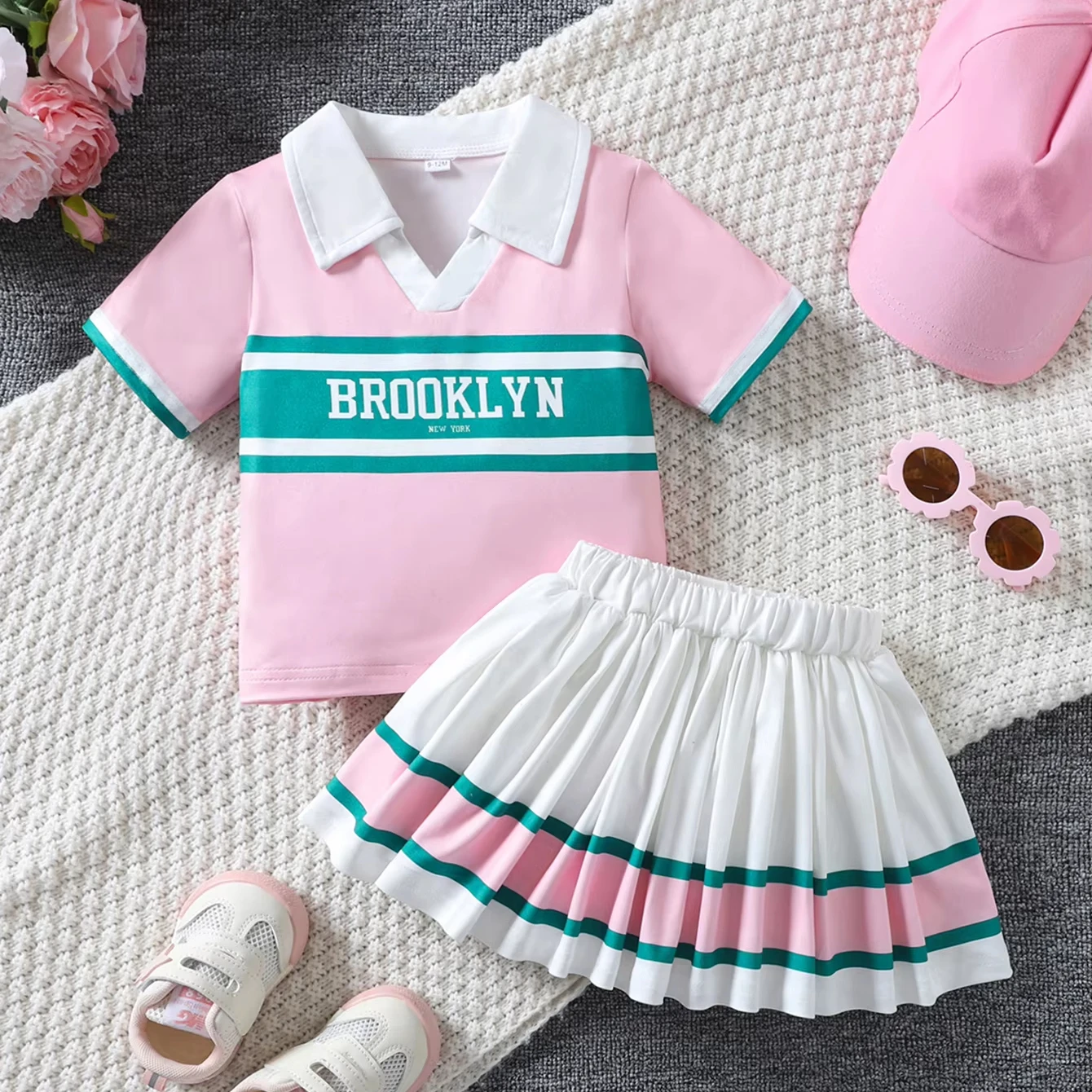 Hot Sale Girls Casual Sport Dress Set Comfy Short Sleeve Skirt and Print Clothing Outfits for Children