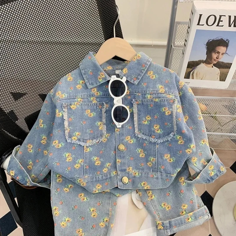 Girls' Set Denim Jacket Autumn Outfit Stylish Baby Internet Famous Children's Single Breasted Two-piece Set