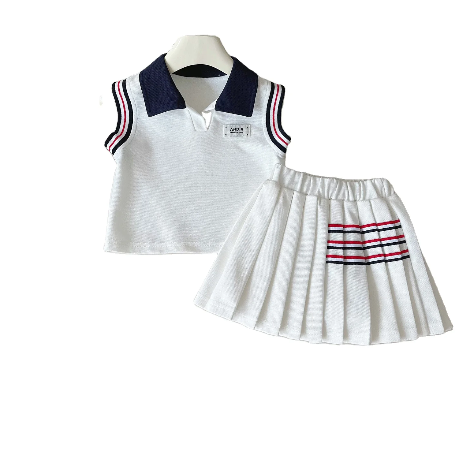 Girls' College Style Polo Collar Sleeveless Vest Set Thin 2026 Summer New Style Pleated Skirt Two-piece Set