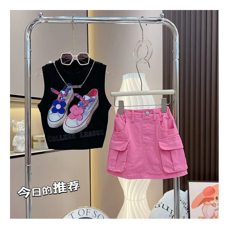 New Arrival for Middle-aged and Older Children, Girls' Spring and Summer Vest and Suspender Dress Two-piece Set