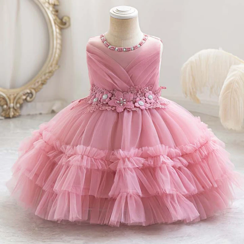 1 2 3 Years Old Net Children Gown Princess Lace Frock Design Baptism Baby Wedding Kids Party Dress Embroidery Dresses for Girls