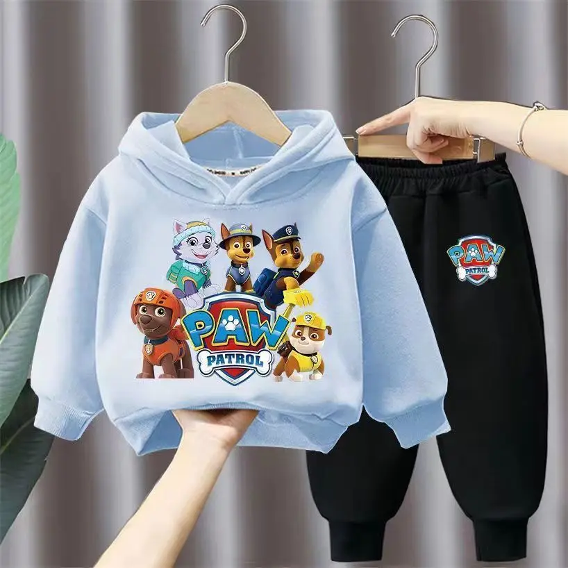 New Boys' Casual Outfits Two-Piece Cotton Hoodie Suit With Foreign Style Cartoon Printed Top Children's Sizes