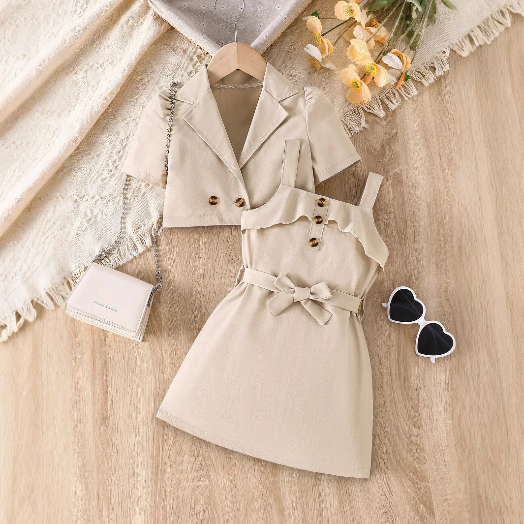 New Arrivals Kids Girls Clothing Pleated Design Sleeveless Button-down Jacket Slim Trousers 2Pcs Kids Suits Children's Clothing