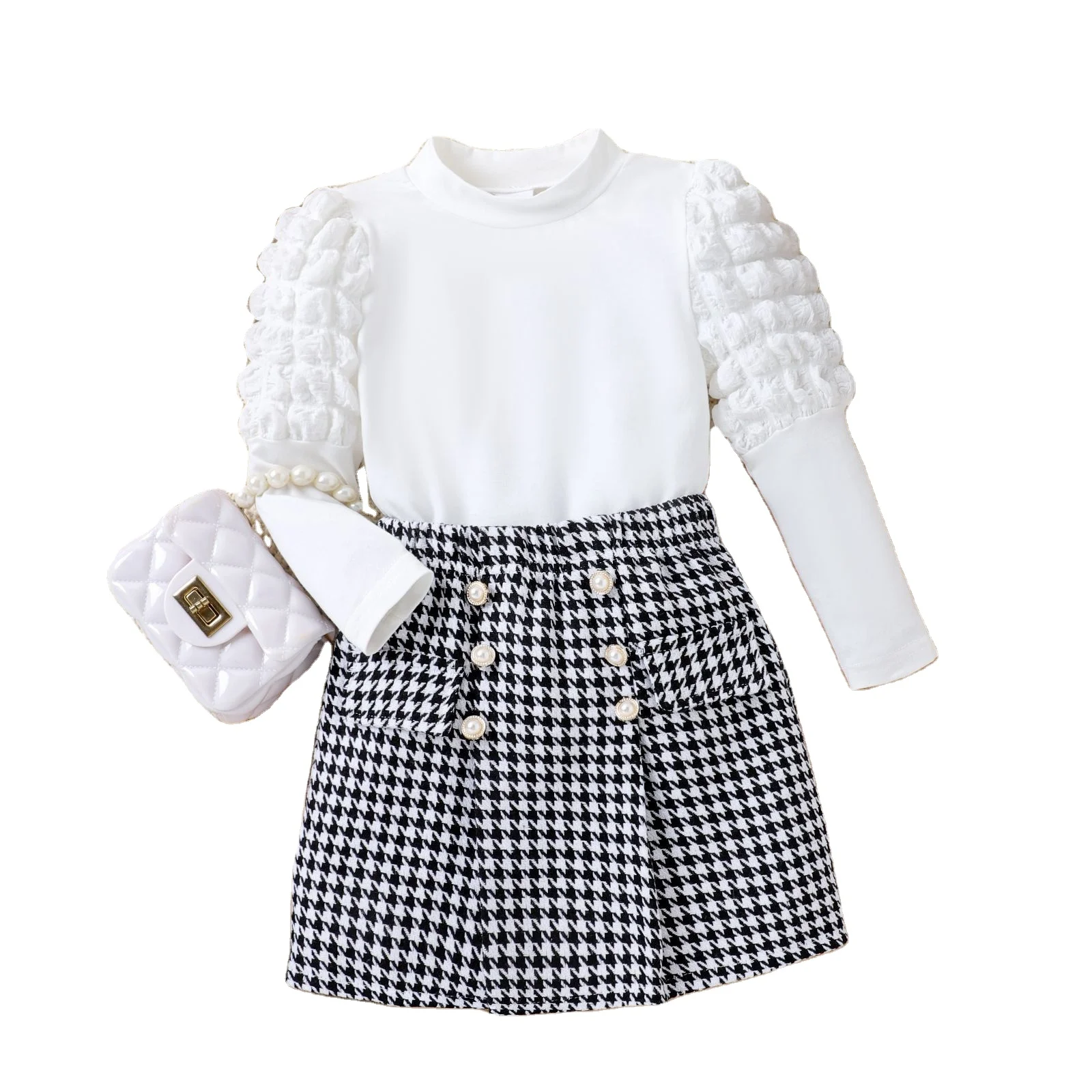 Children's Clothing pink Patchwork White Jacket Pleated Skirt New Baseball Coat Jacket