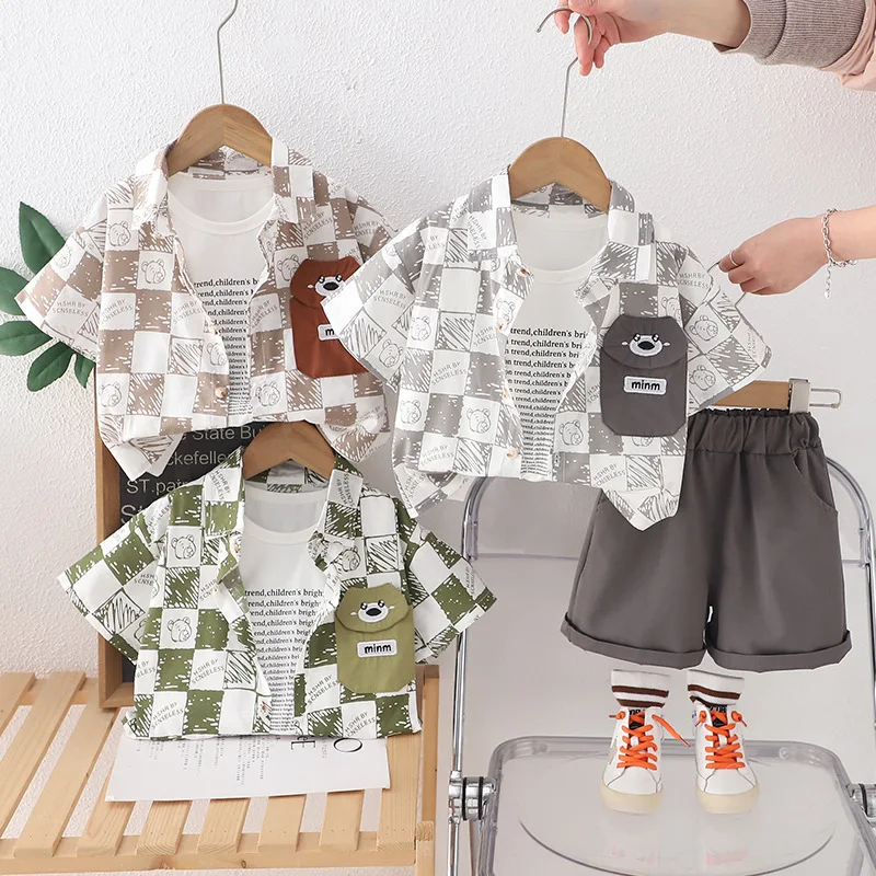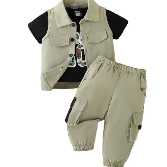 Summer New Boys Baby Children Set 100% Cotton Comfortable Short Sleeve Shirt Three-Piece for Tide for Kids