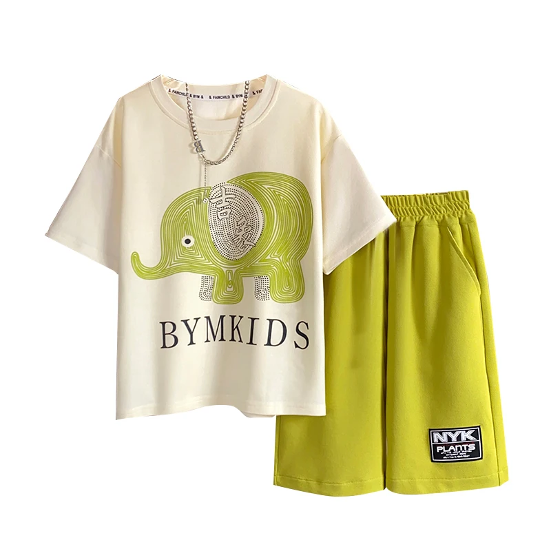 2026 New Boys Summer Suit CUHK Fashionable Print Cotton Sports Short Sleeve Net Red Tidal Casual Style