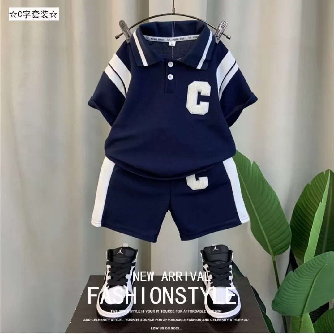 1-5 Years European and American Fashion POLO Lapel Boy Suit Short Sleeve Boys Clothing