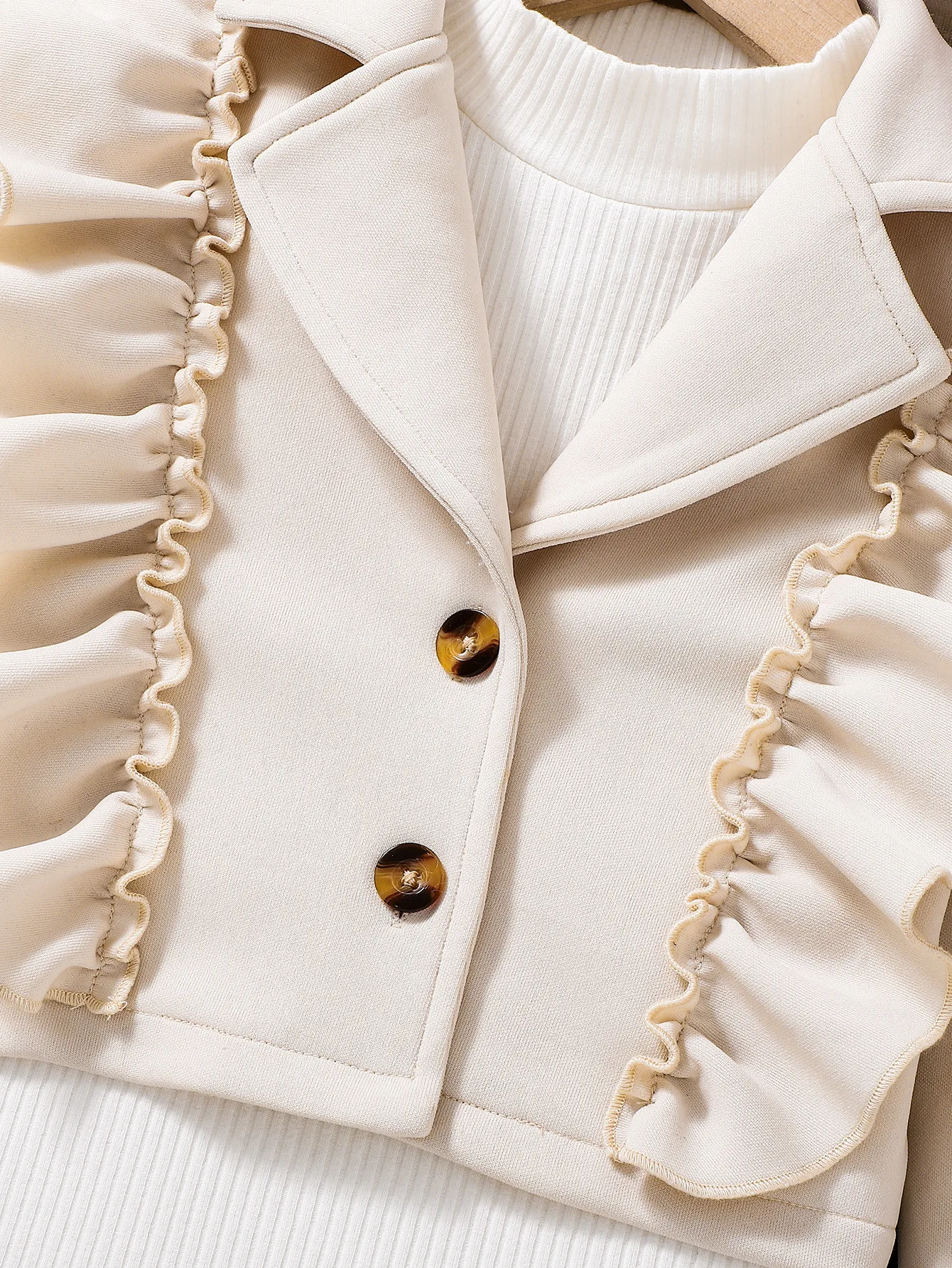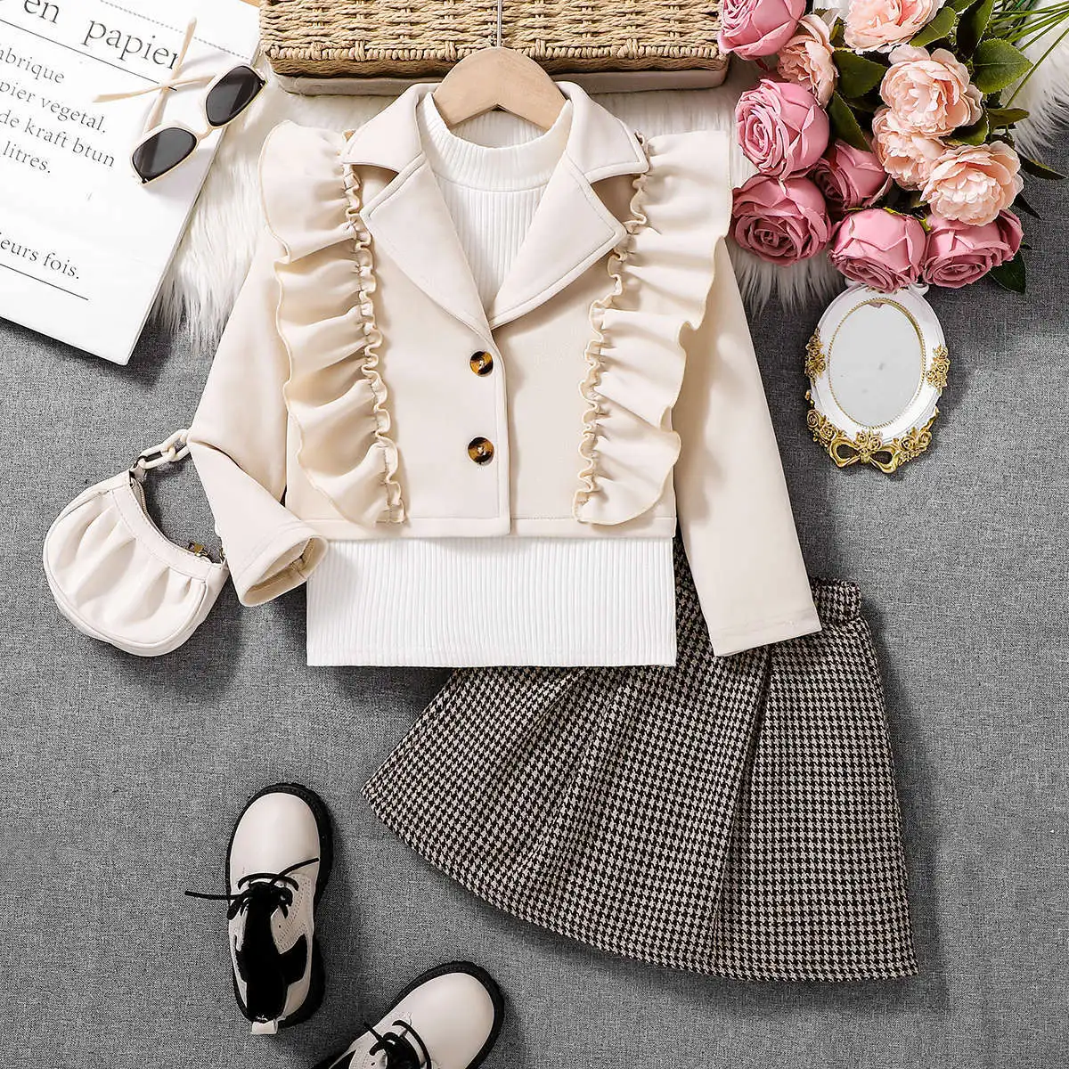 2026 Autumn Winter Children Girl Sets Fashion Ruffled Jacket White T Shirt Plaid Skirt Wholesale Kids Clothing