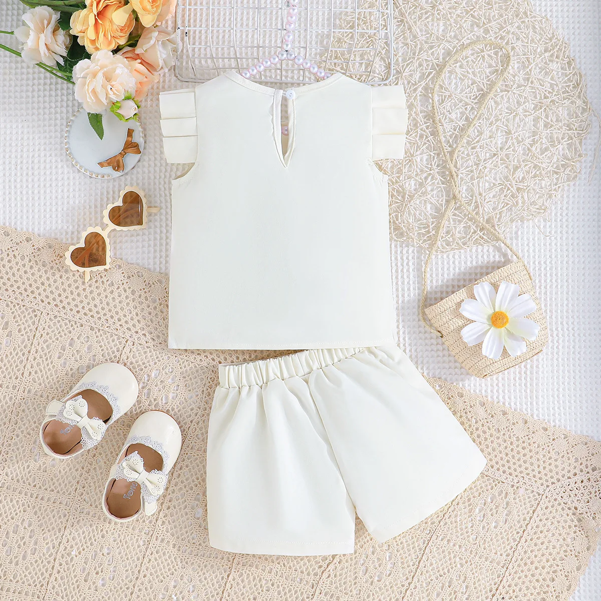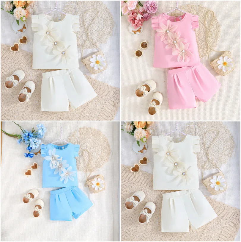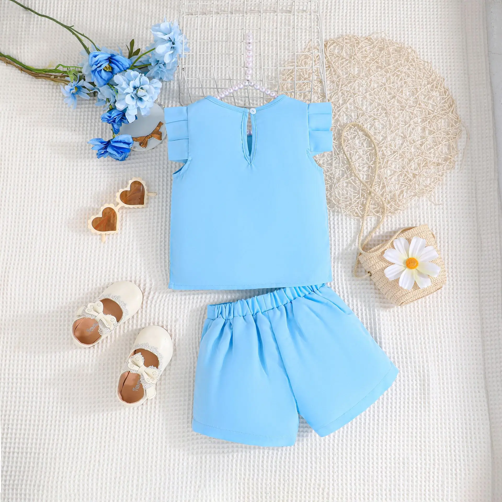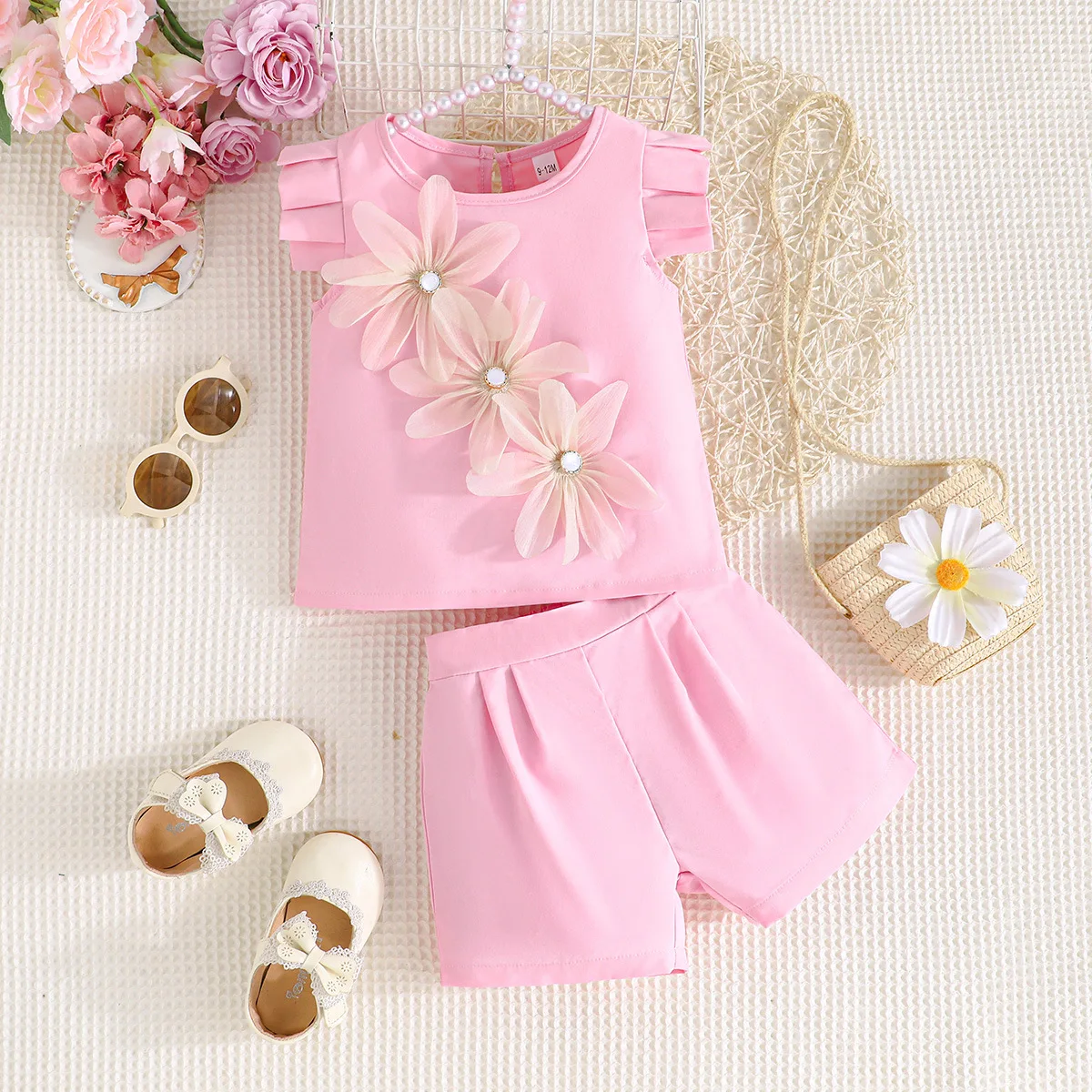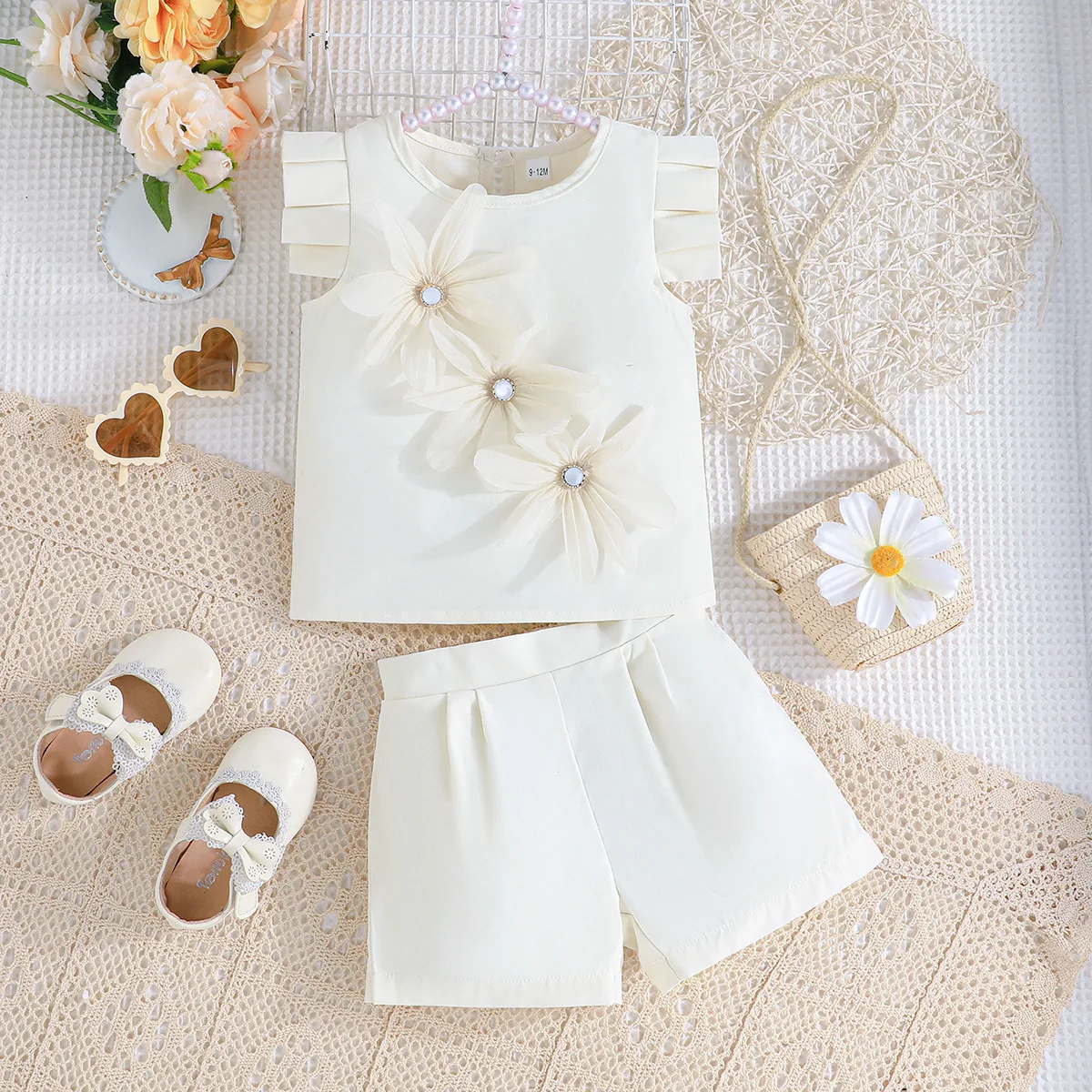 2026 Girls’ Cross-Border Summer Two-Piece Set Sunflowers and Shorts With Short Sleeves for Ages 7 and 12 Years Size 4T