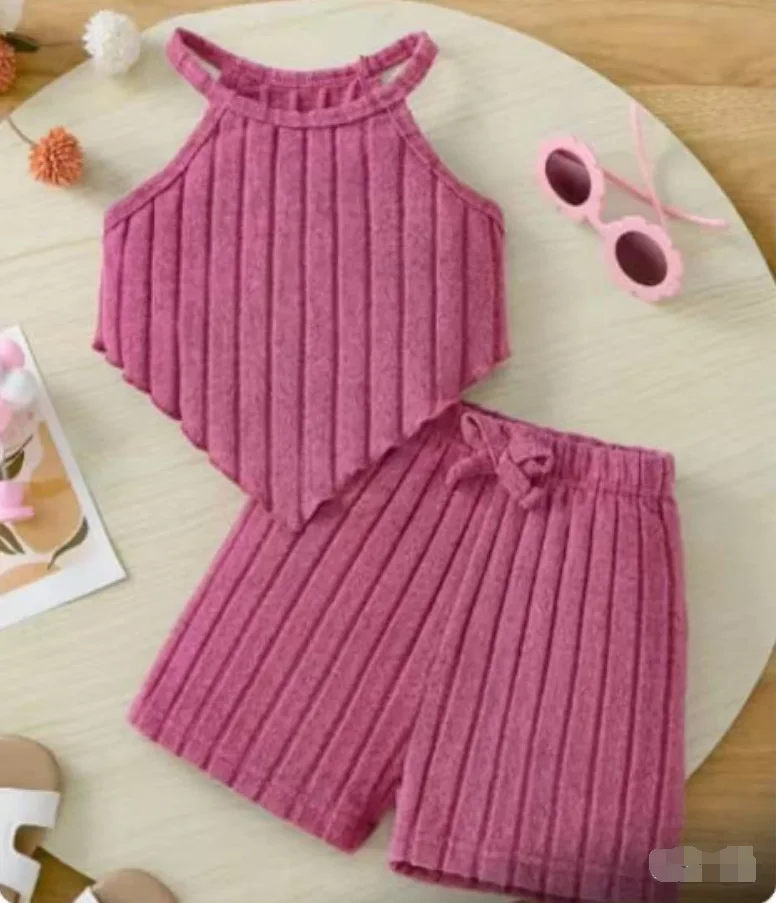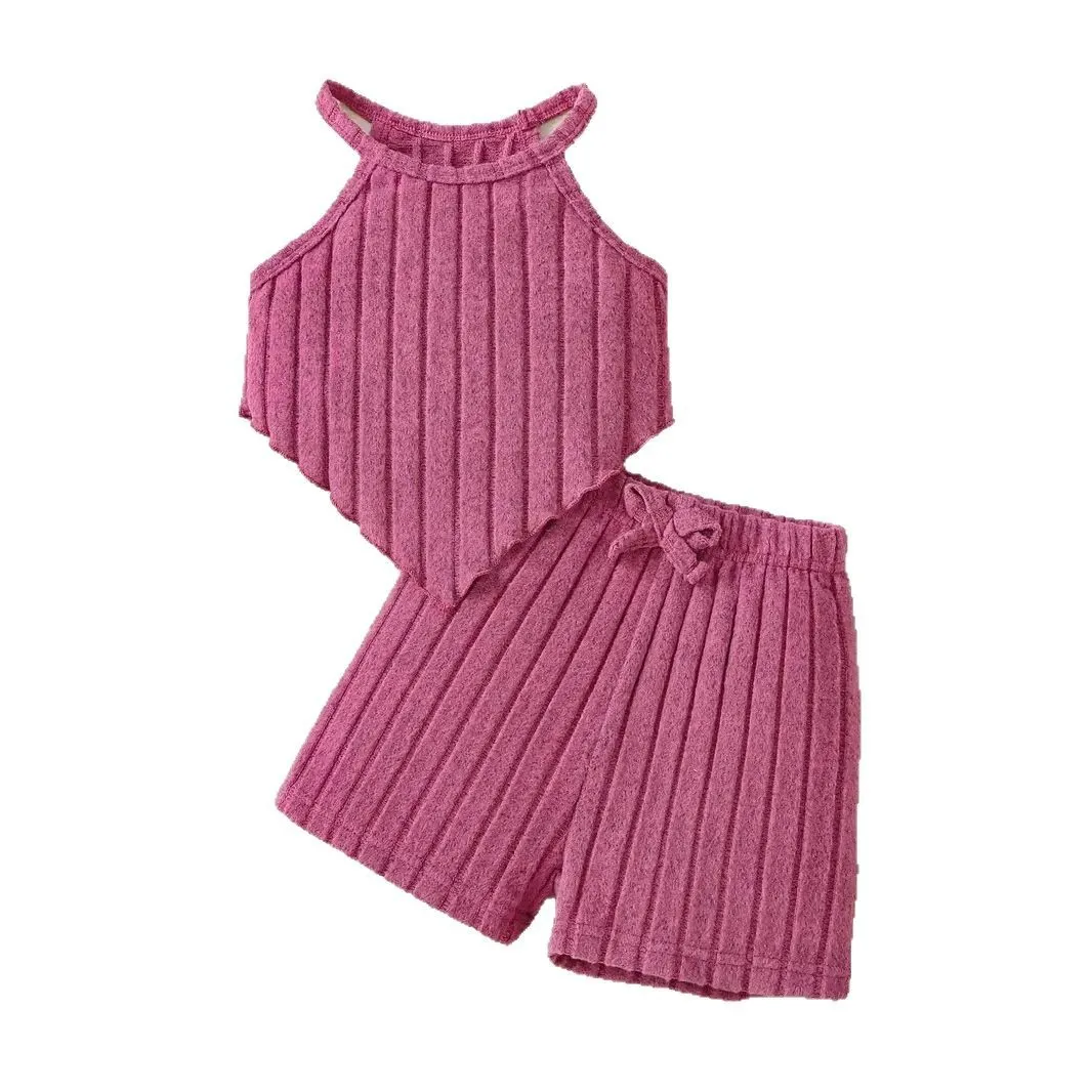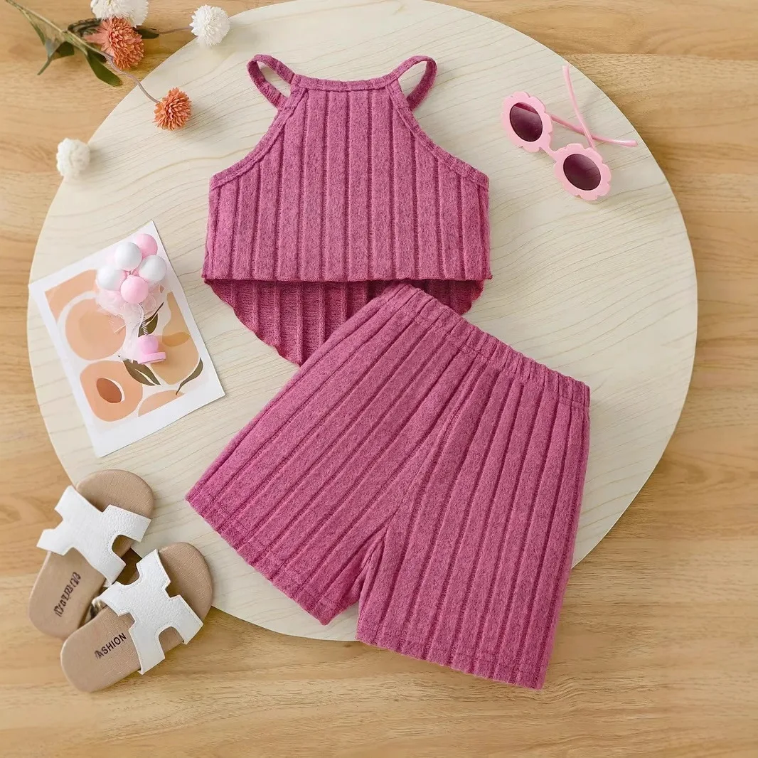 2026 Girls Cute Cotton Vest Top & Shorts Set New Solid Pattern Western Style Summer Casual Wear
