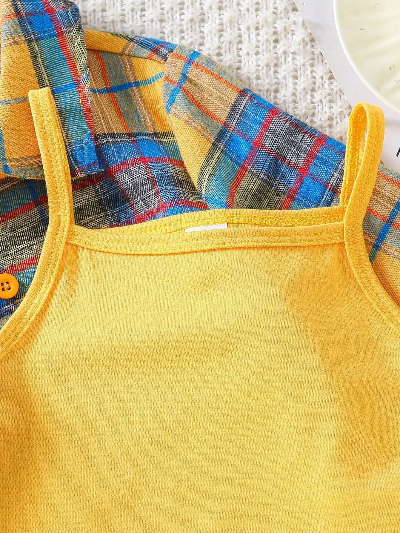 2026 Hot Sales Popular Designer Kids Wear Wholesale Fashion Lapel Plaid Shirt Halter Vest Beaded Jeans 3pcs Girls Clothing