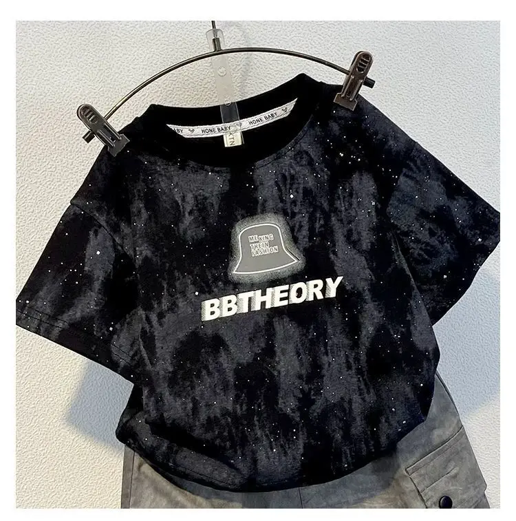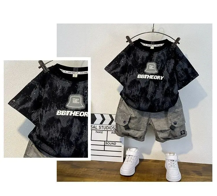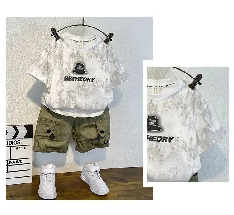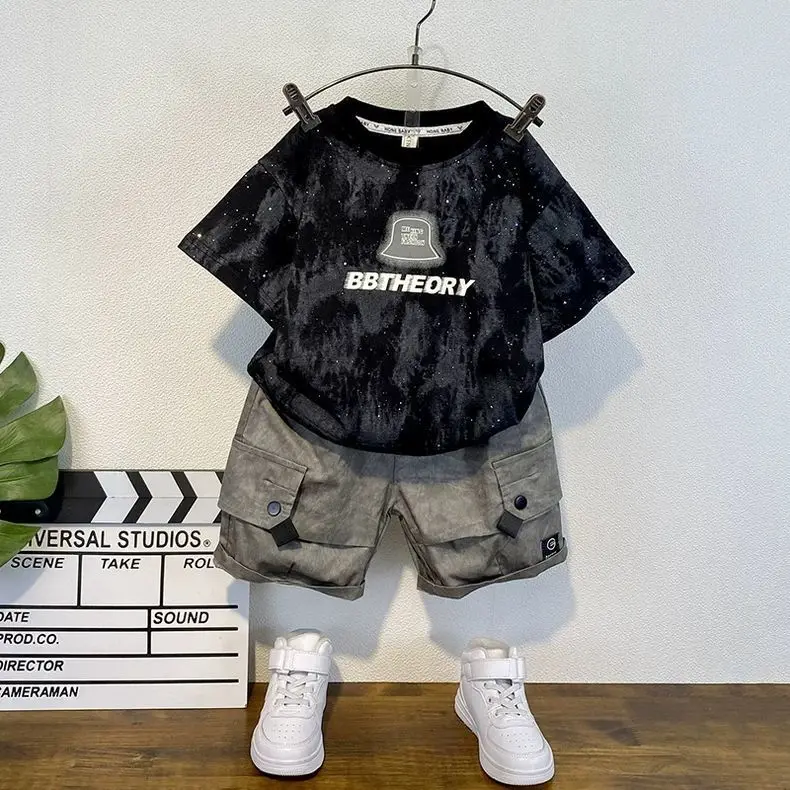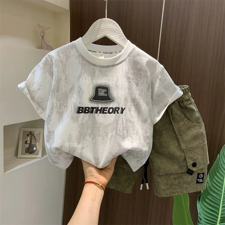 2026 New Boys Casual Cotton Short Sleeve Suit Fashionable Foreign Style Two-Piece Set for Small Boys in Summer