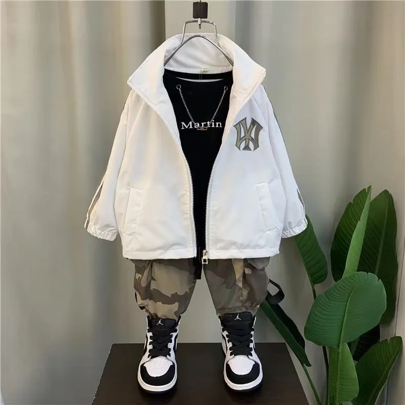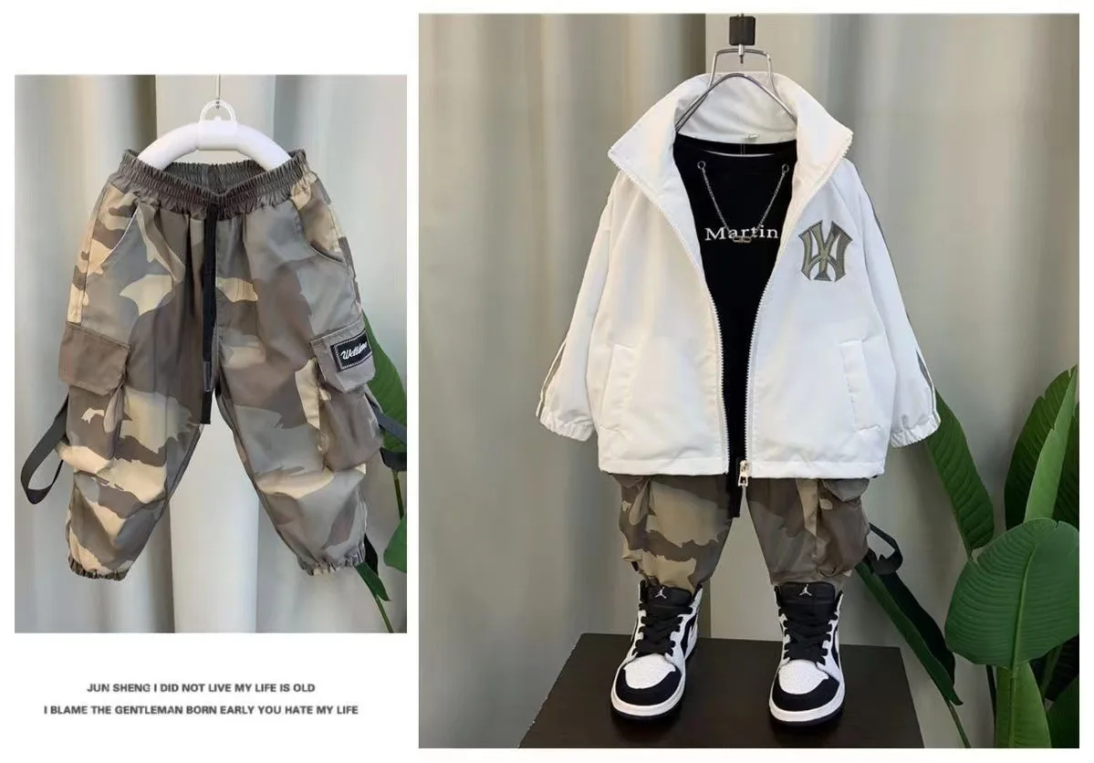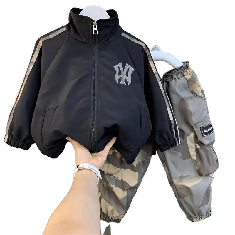 2026 New Boys Sports Two-Piece Set Handsome Baby’s Spring and Autumn Clothes Casual Cotton Print Suit