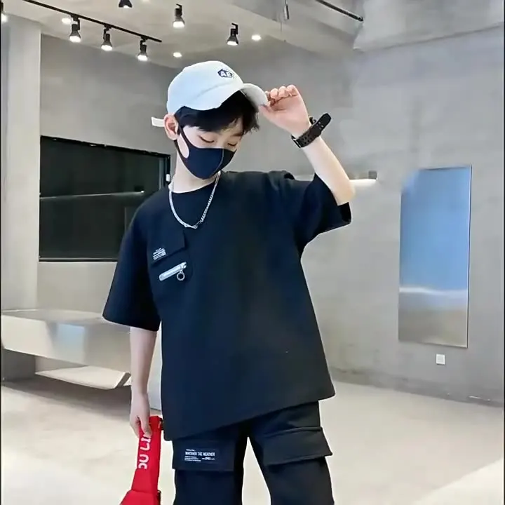2026 New Boys Summer Suit CUHK Fashionable Print Cotton Sports Short Sleeve Net Red Tidal Casual Style