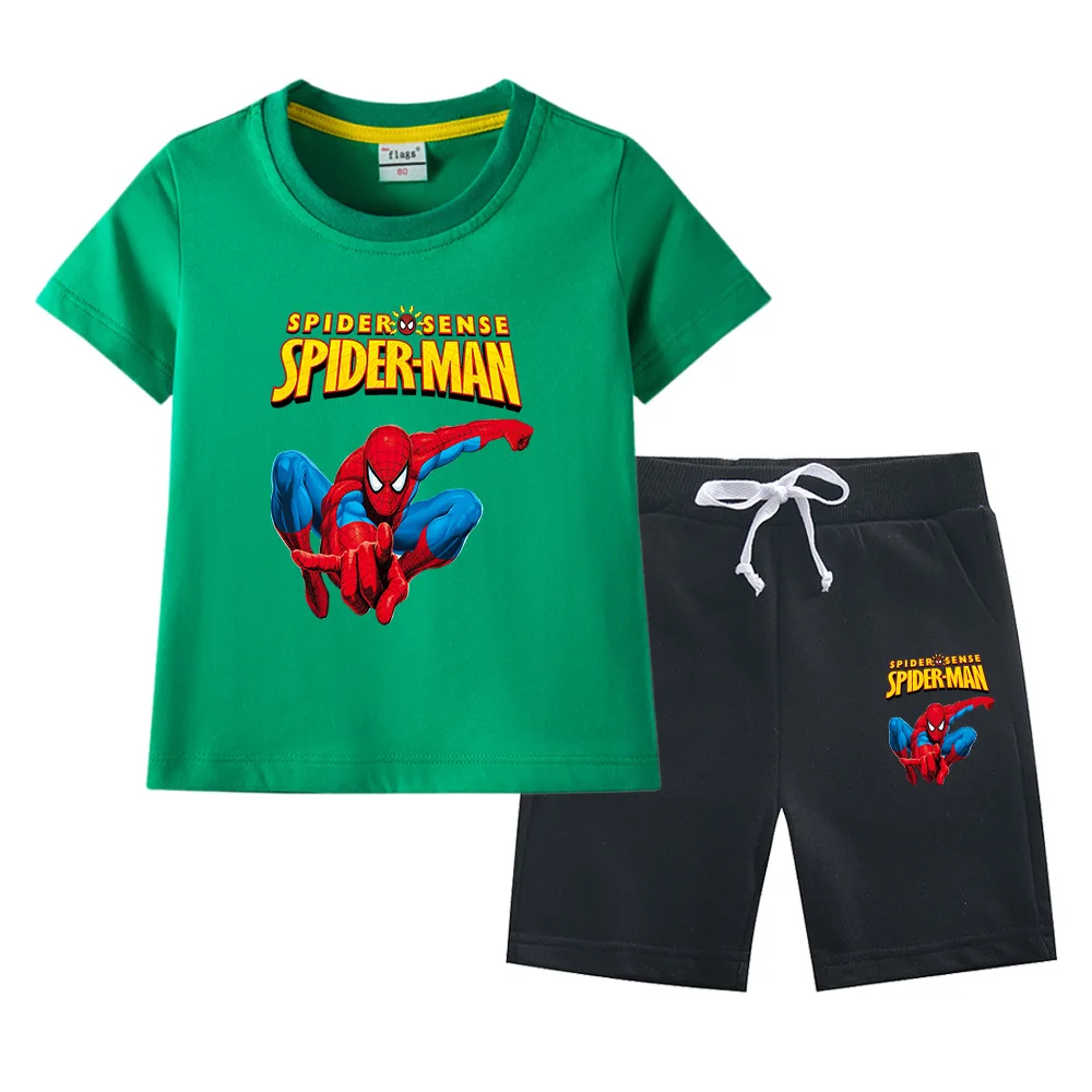 2026 New Spider-Man Boys’ Casual Summer Suit Cotton Short Sleeve T-Shirt & Pants Children’s Clothing
