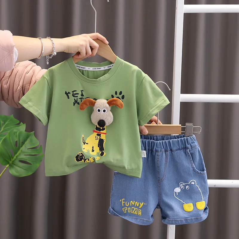 2026 New Summer New Boys Short-sleeved 1-5 Years Old Casual Two-piece Children’s Clothing Foreign Trade Wholesale