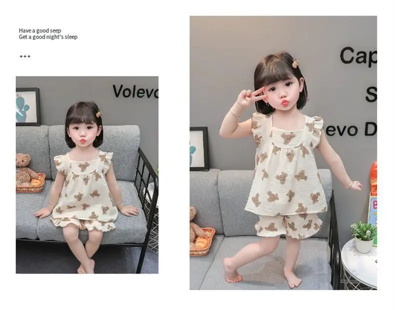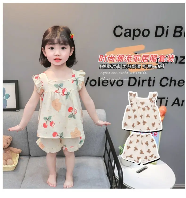 2026 Pajamas for Girls Children Summer Thin Vest Shorts Set Children Little Girl Baby Going Out Home Clothes Factory Wholesale