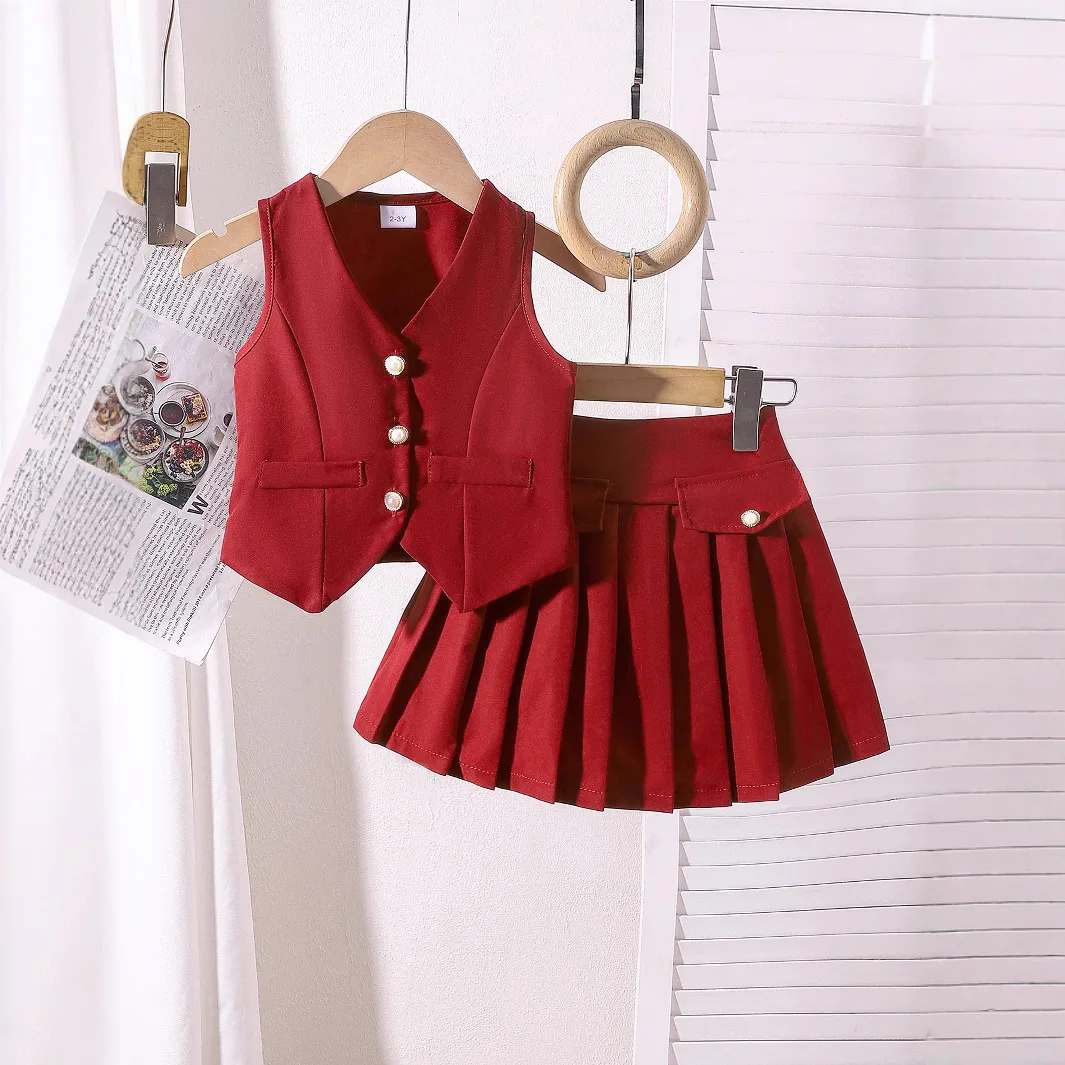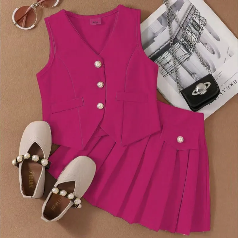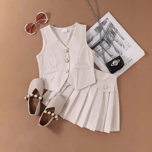 2026 Summer European American Girls’ Vest Jacket Pleated Skirt Set Casual Cotton Style for Children’s Cross-Border Foreign Trade