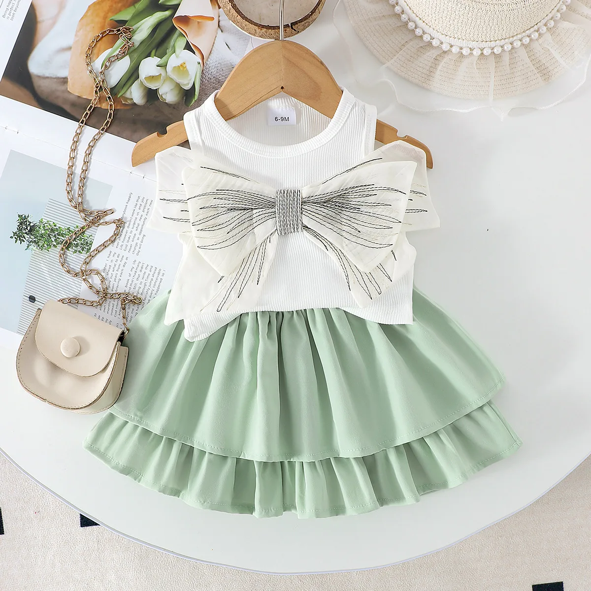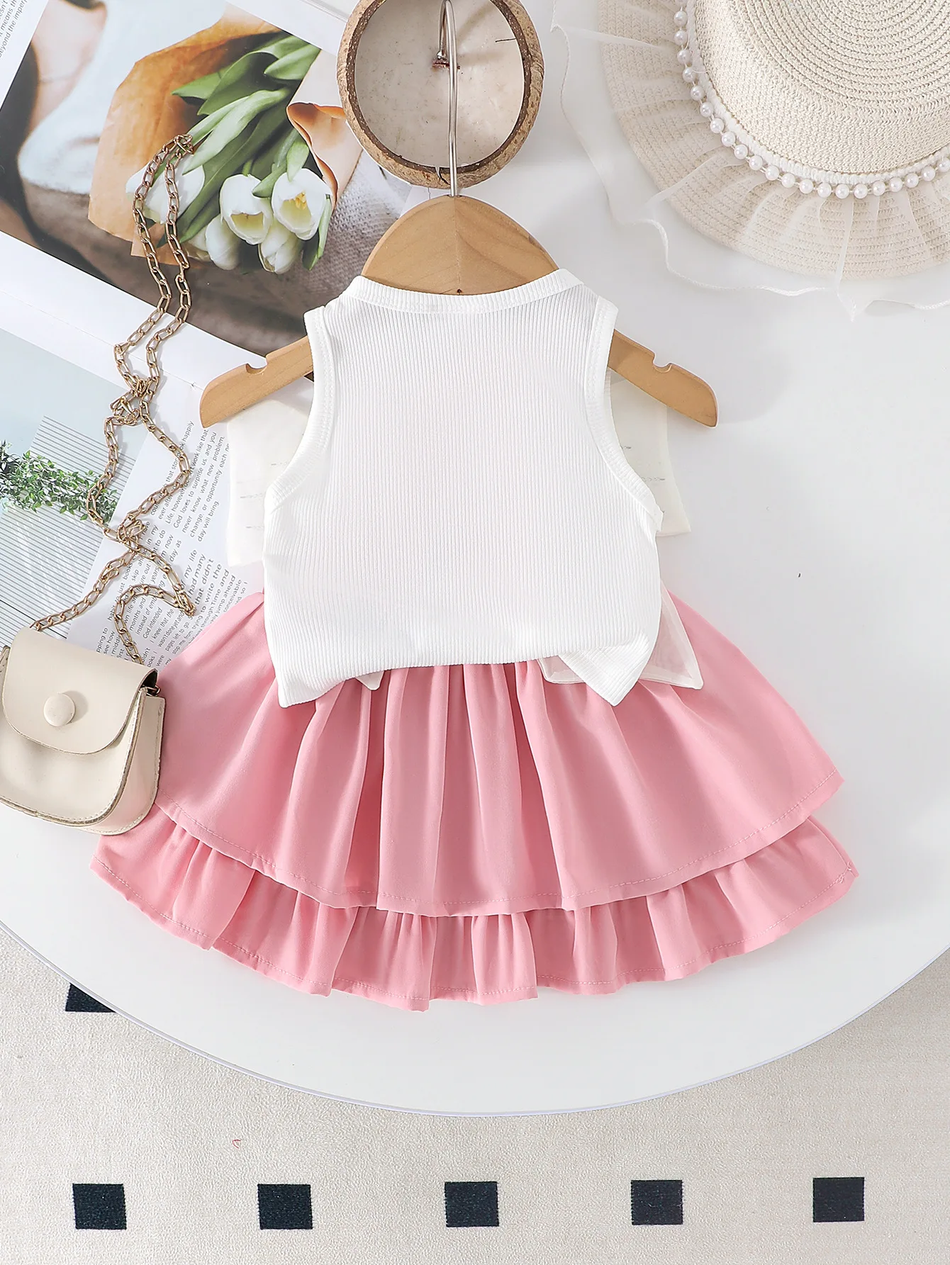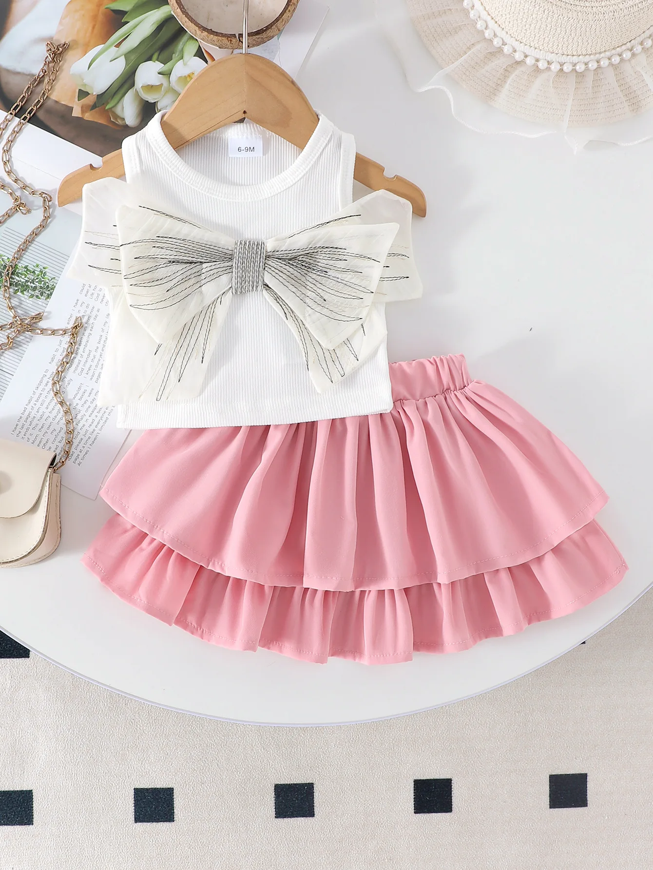 2026 Summer Floral Boutique Style Bow Decorative Sleeveless Top and Paggy Skirt for Cute Girls for Toddlers