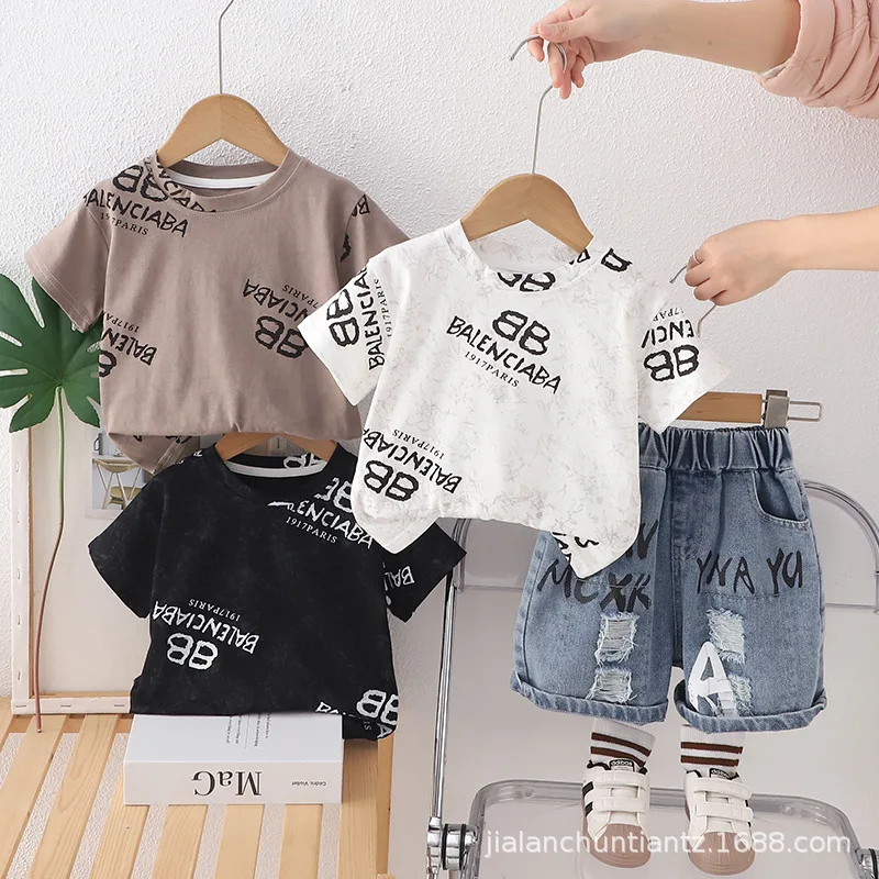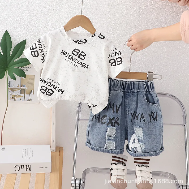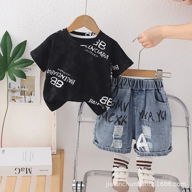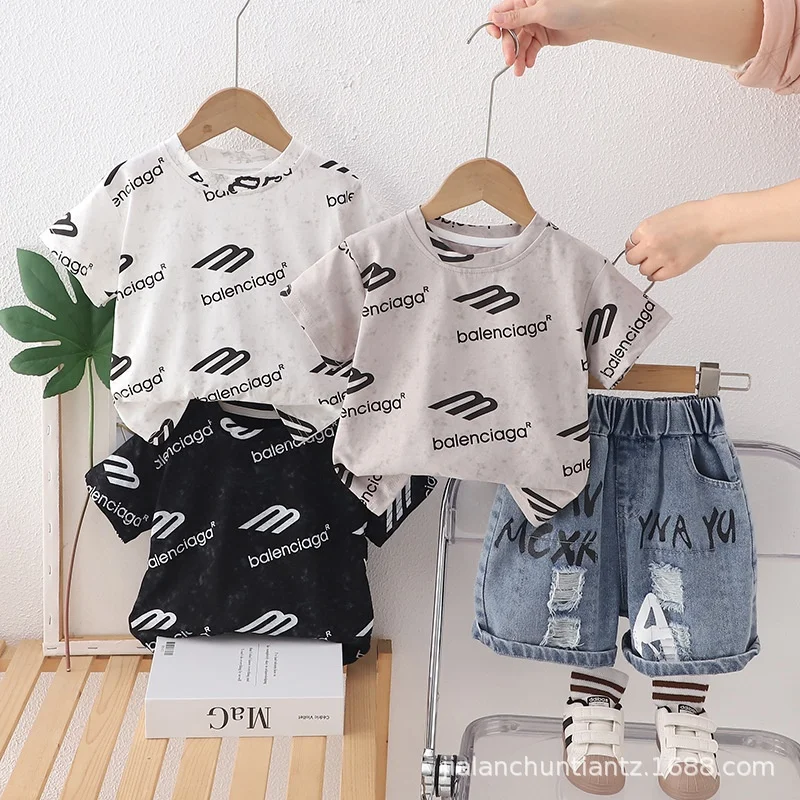2026 Summer New Fashion Boys’ Casual Neck Short Sleeve Two-Piece Set Trendy Thin Clothing Baby Outfit Wholesale for Children