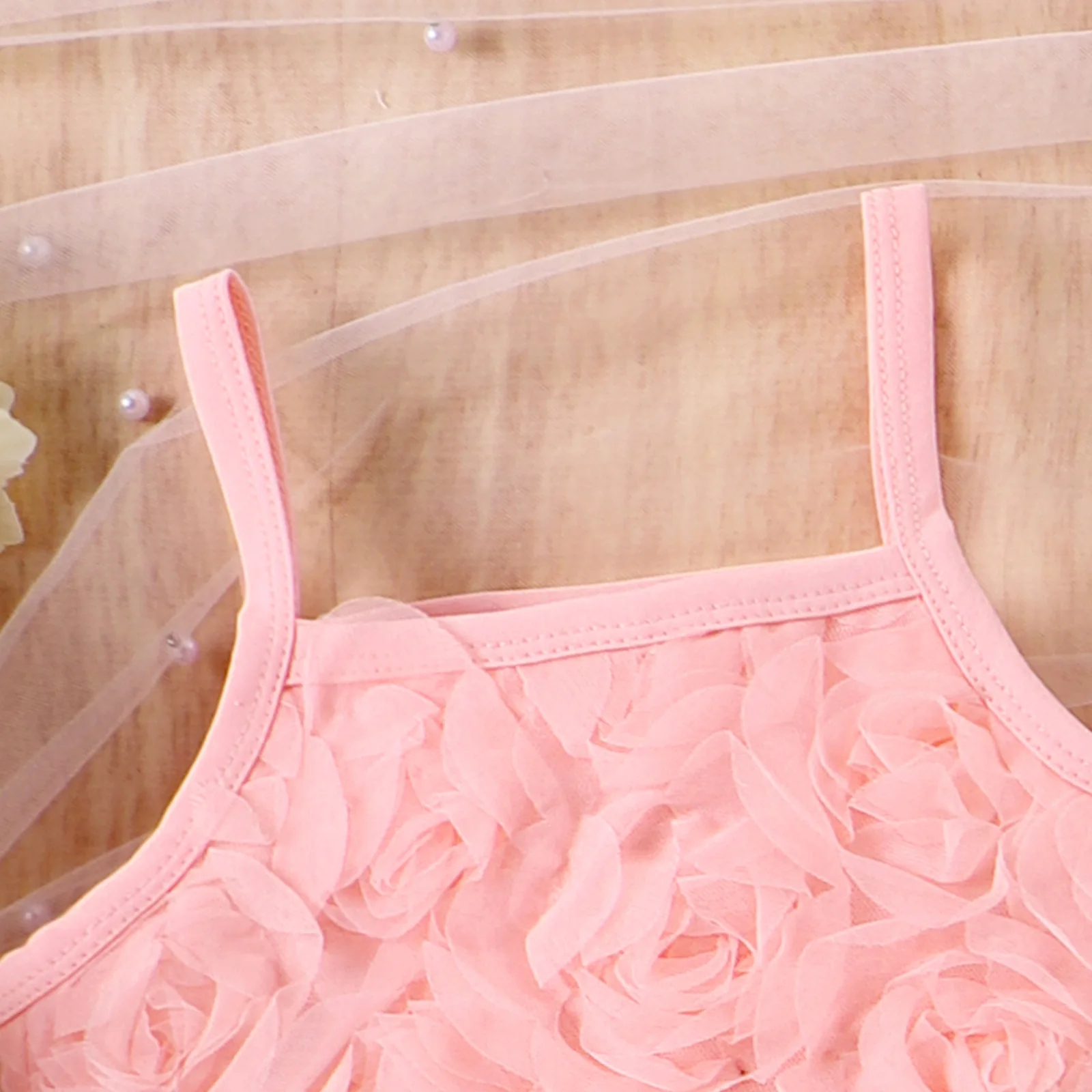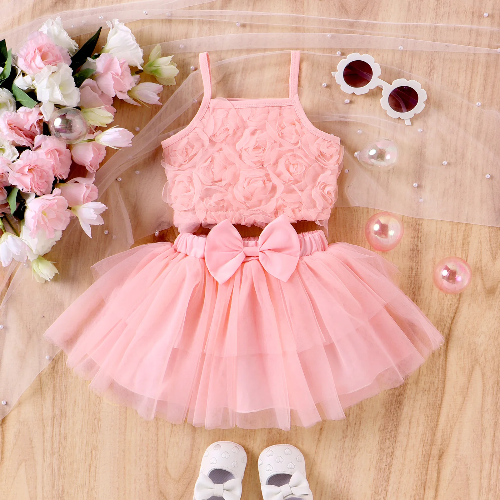 2026 Summer New Kids Clothing Girls Fashion Floral Suspender Top+Mesh Bow Short Skirt Baby Girl Clothes 9-12 Months