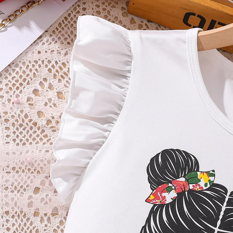 2026 Summer New Women’s Children’s Clothing Set Short Sleeve Jacket Mesh Overskirt 7-12 Years Old Girls’ Fashion Two-Piece Set