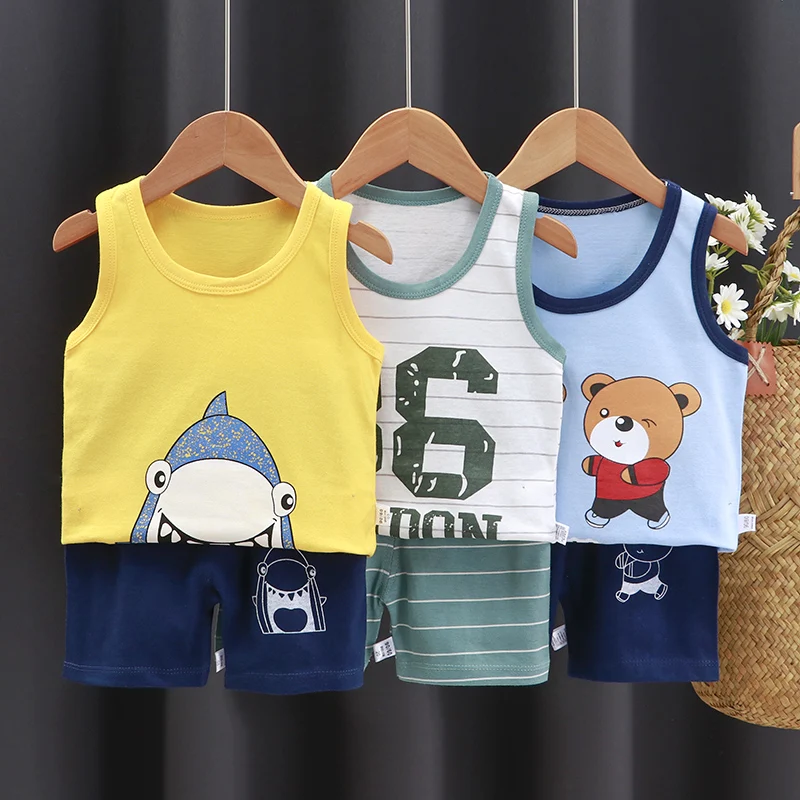 Baby Clothes Sets Vest Pullover Summer Cotton New Vest Shorts Boys and Girls Sleeveless Sets Children’s Clothing