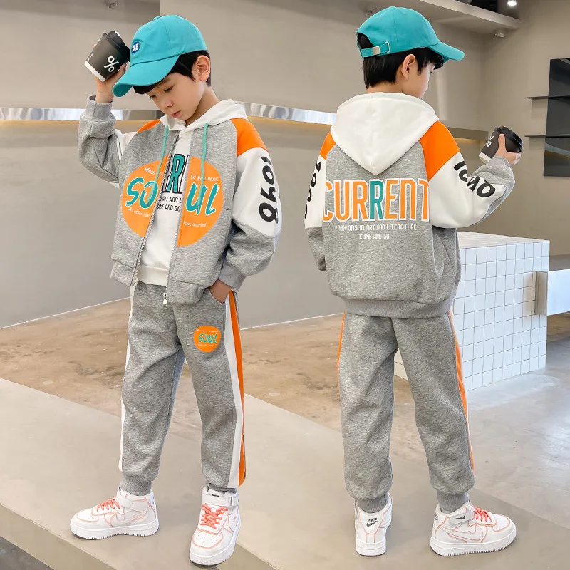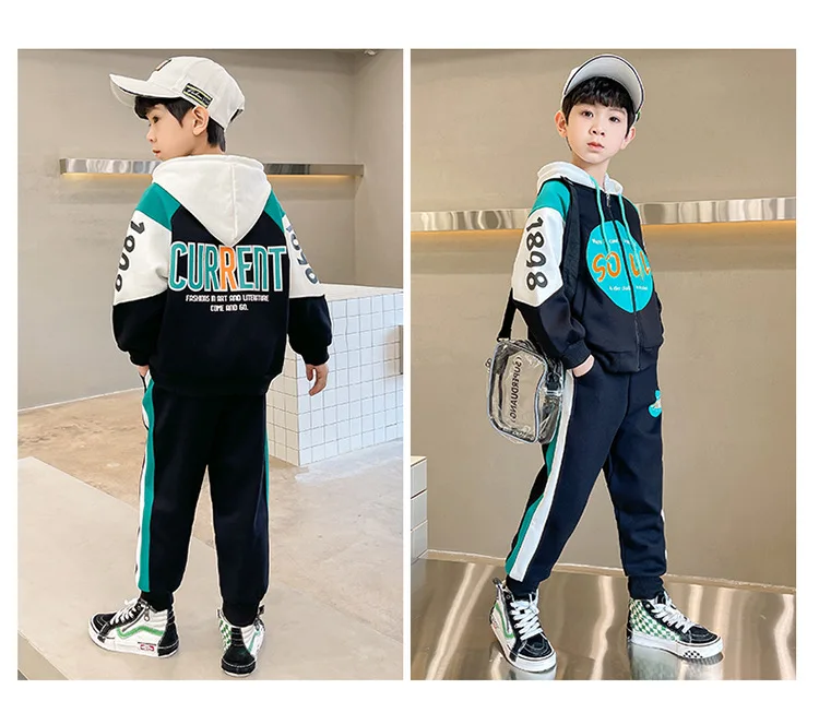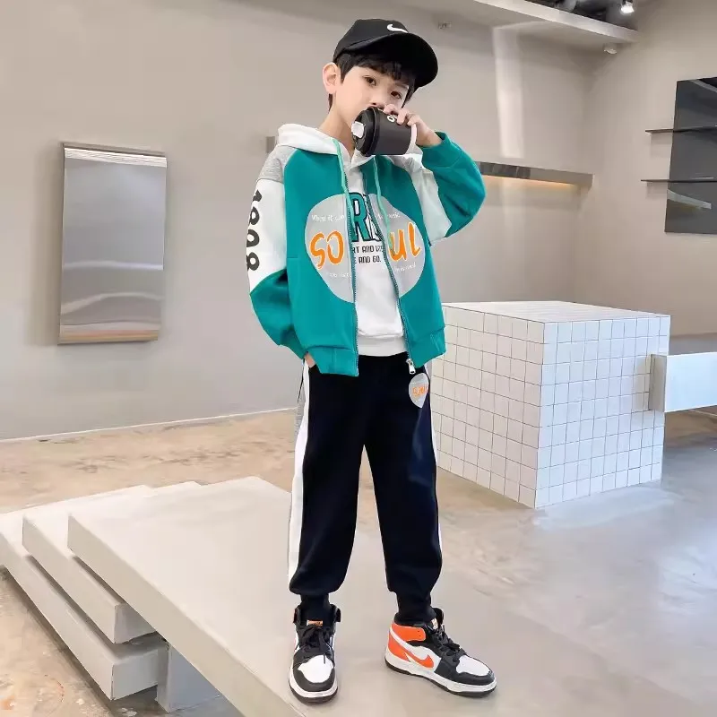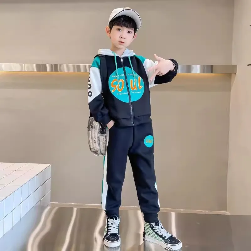 Boys’ Set Spring and Autumn New Style Autumn Sports Trendy Handsome and Fashionable Big Children’s Clothes Boys’ Two Piece Set