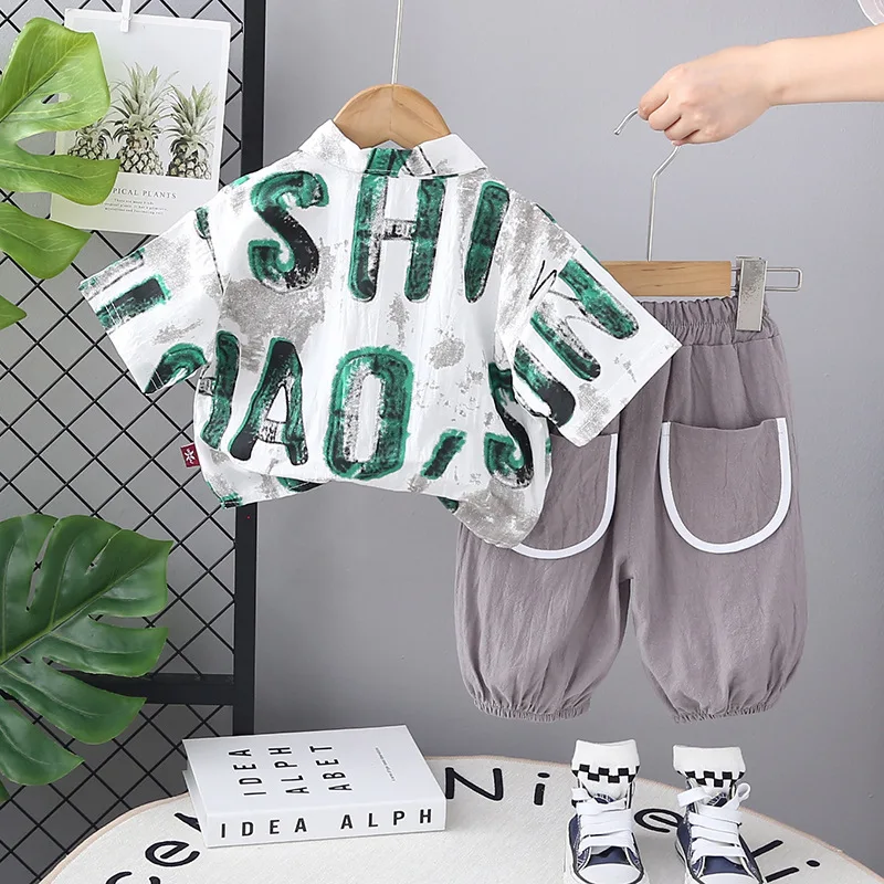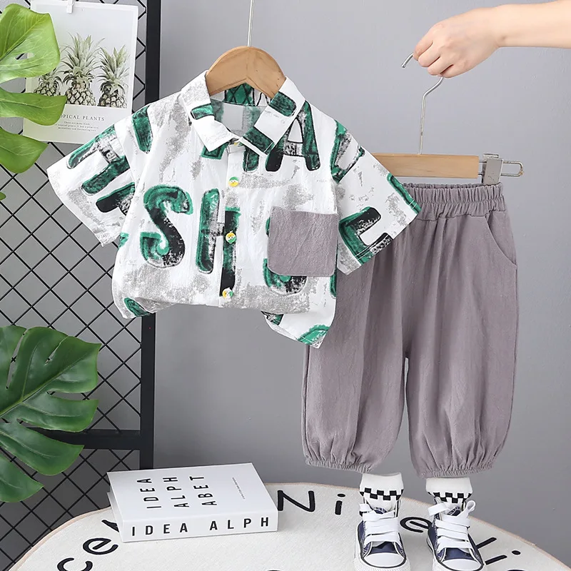 Boys Summer New Short-sleeved Children Clothing Children Thin Shirt Lapel Casual Pants Shirt Two-piece Set