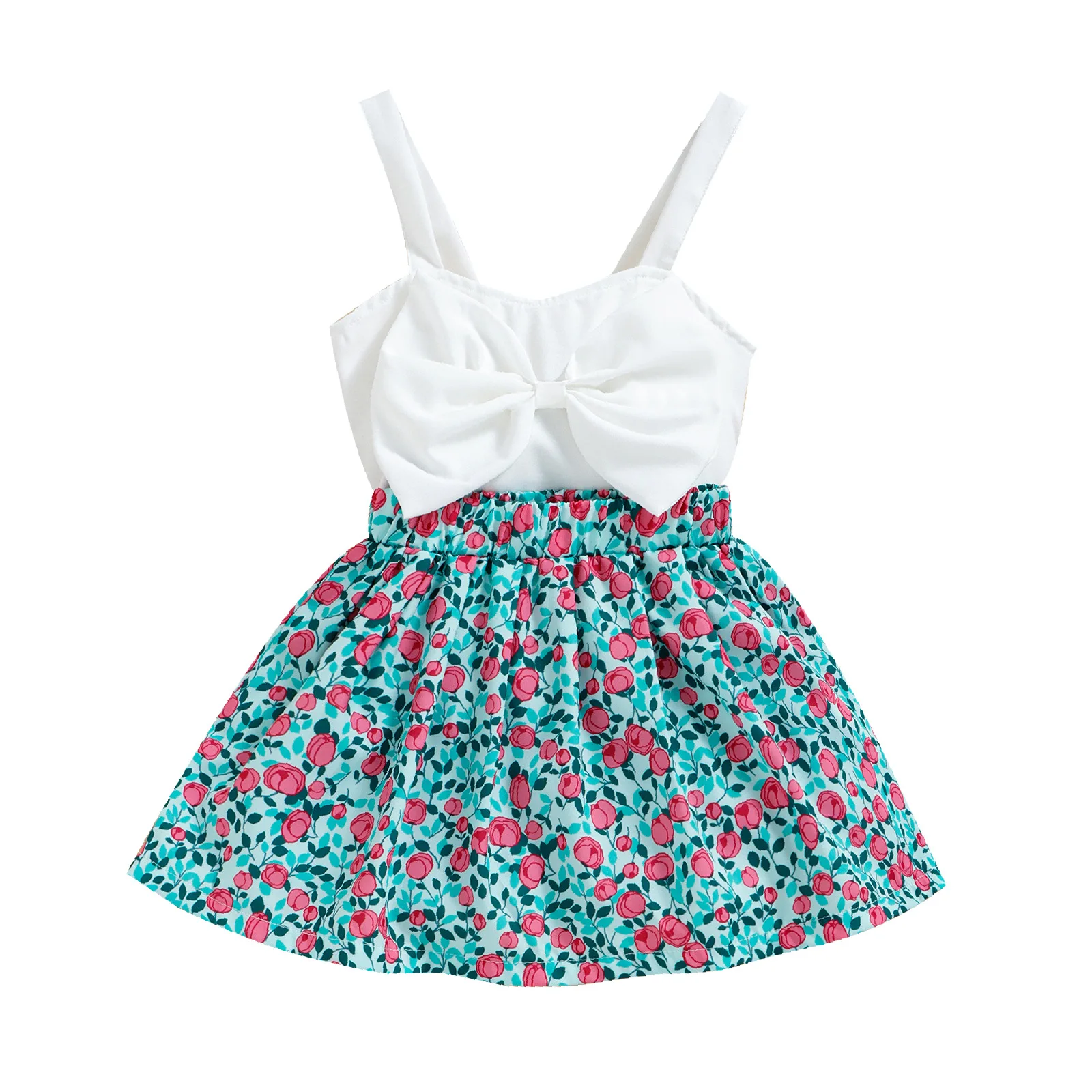 Casual Floral Print Girls’ Suit for Spring and Summer White Condole Belt With Breathable Floral Skirt New Small Sizes Clothes