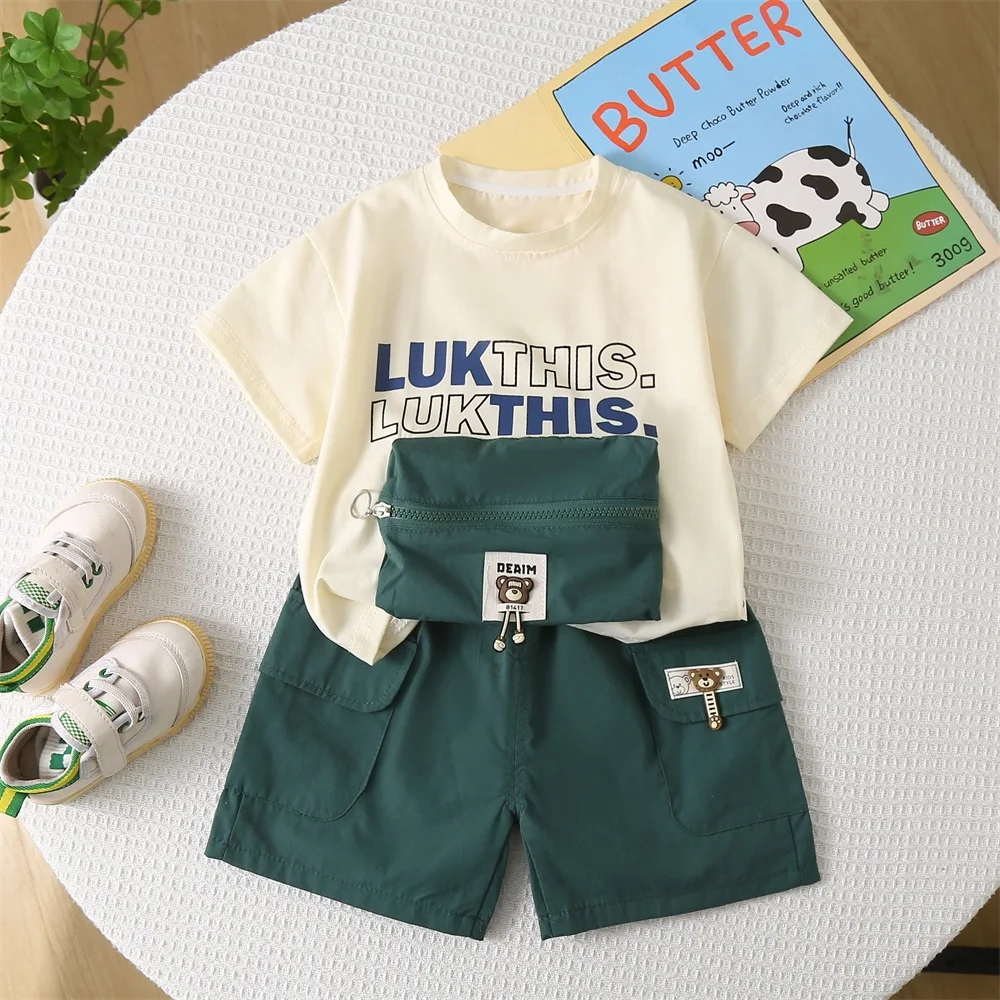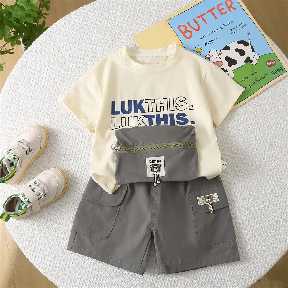 Cheap Price Summer Kids Clothes for 1-5 Years Kids Cartoon Character Outfit T-shirt and Chinos Boys Shorts Sets