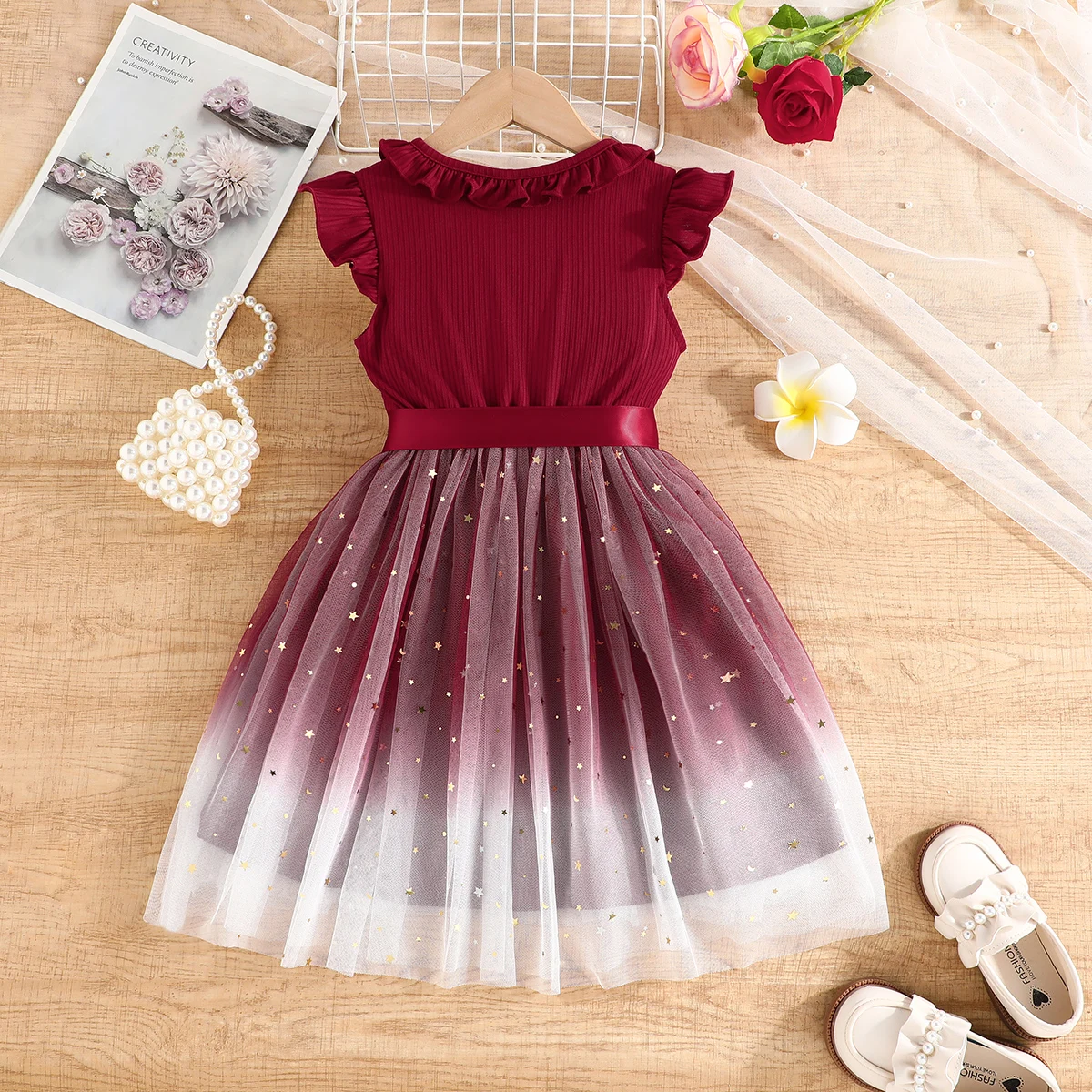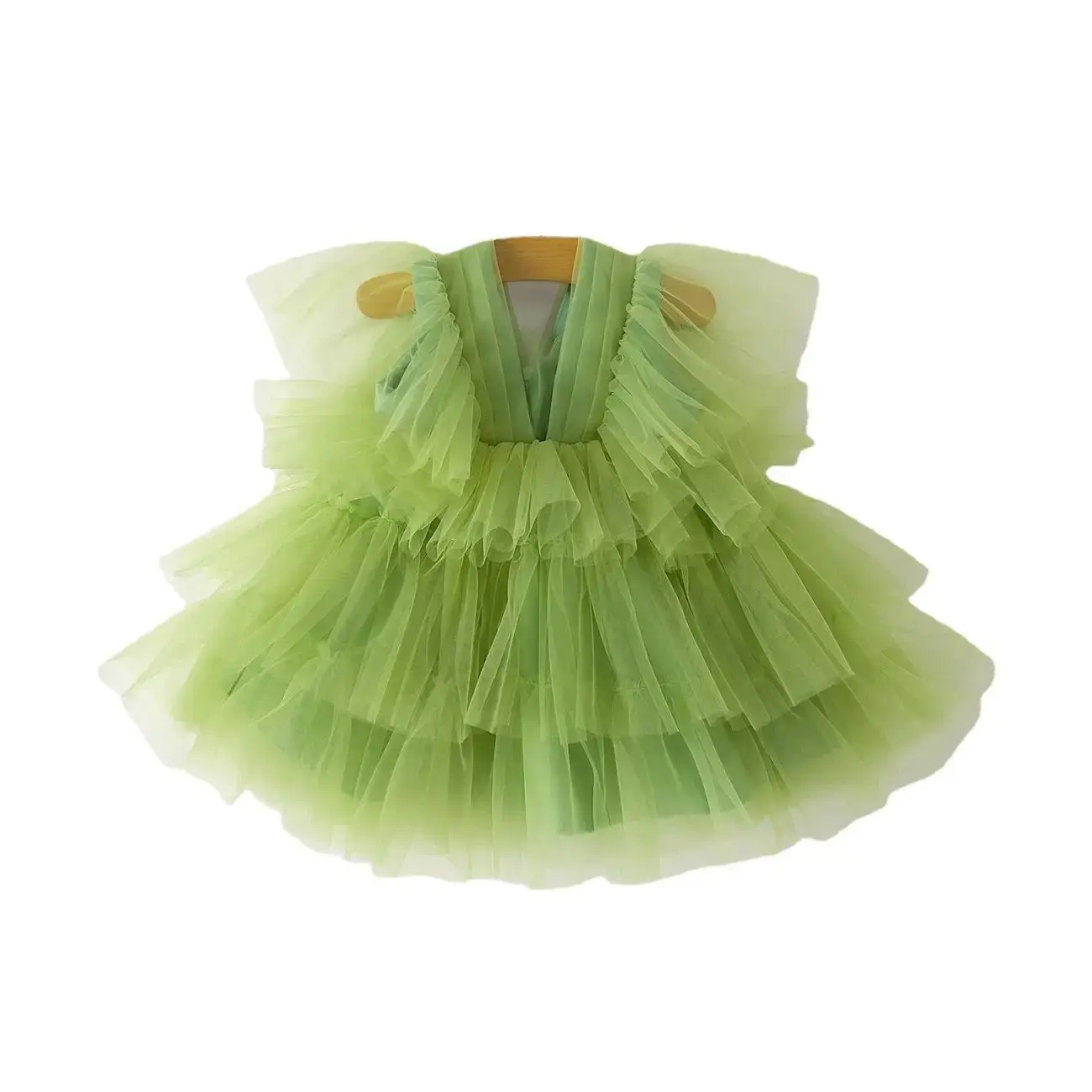 Children’s Clothing Fashion Ruffle Edge Mesh Dress Birthday Party Girl Elegant Princess Dress