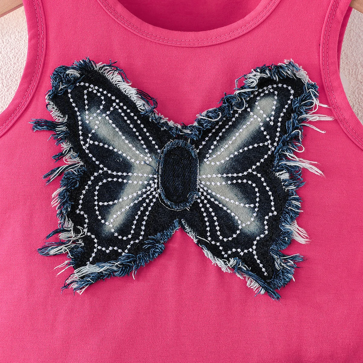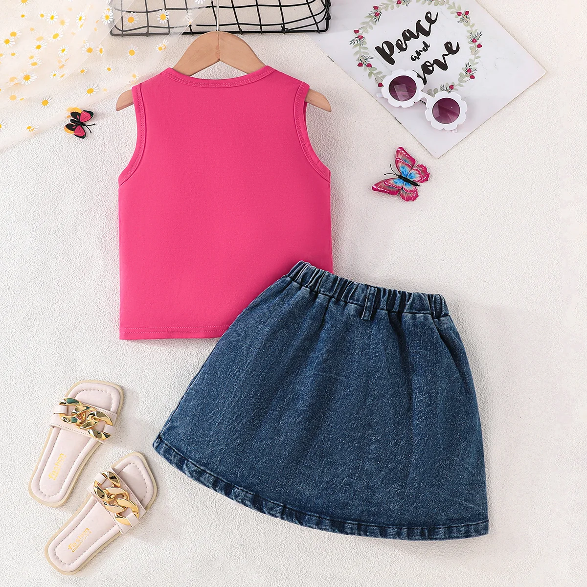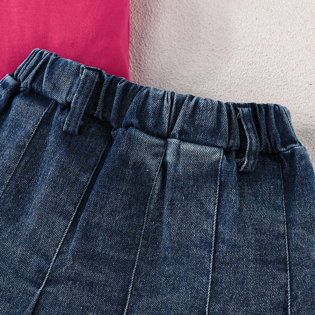 Children’s Clothing for Girls Aged 4-7 Fashion Butterfly Pattern Top Paired with Polyester Cotton Denim Pleated Skirt Factory