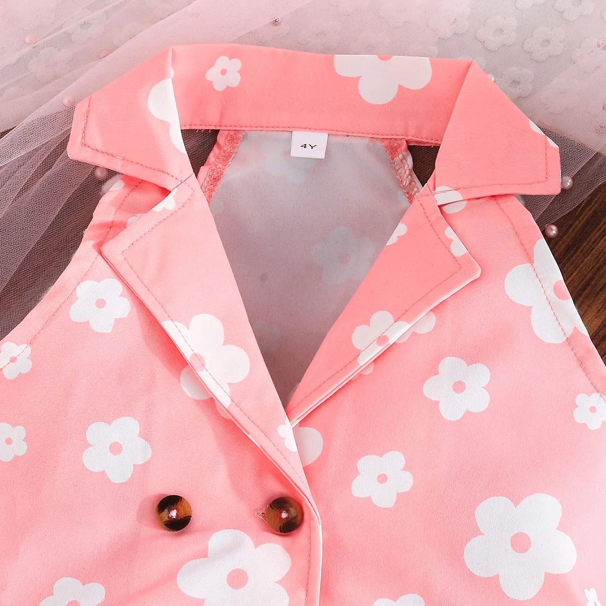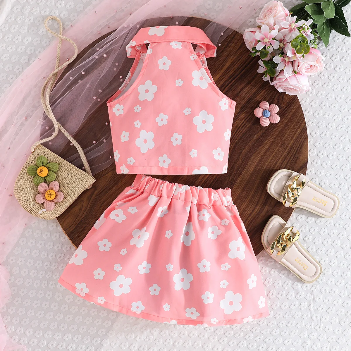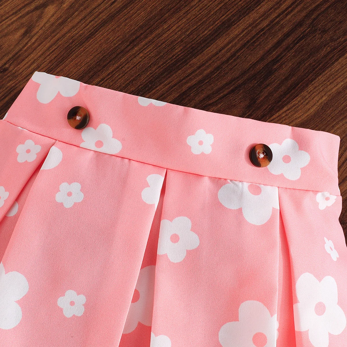 Children’s Clothing for Girls Aged 4-8 Exquisite Floral Sleeveless Top Fashionable Short Skirt Elegant Two-piece Set for Girls