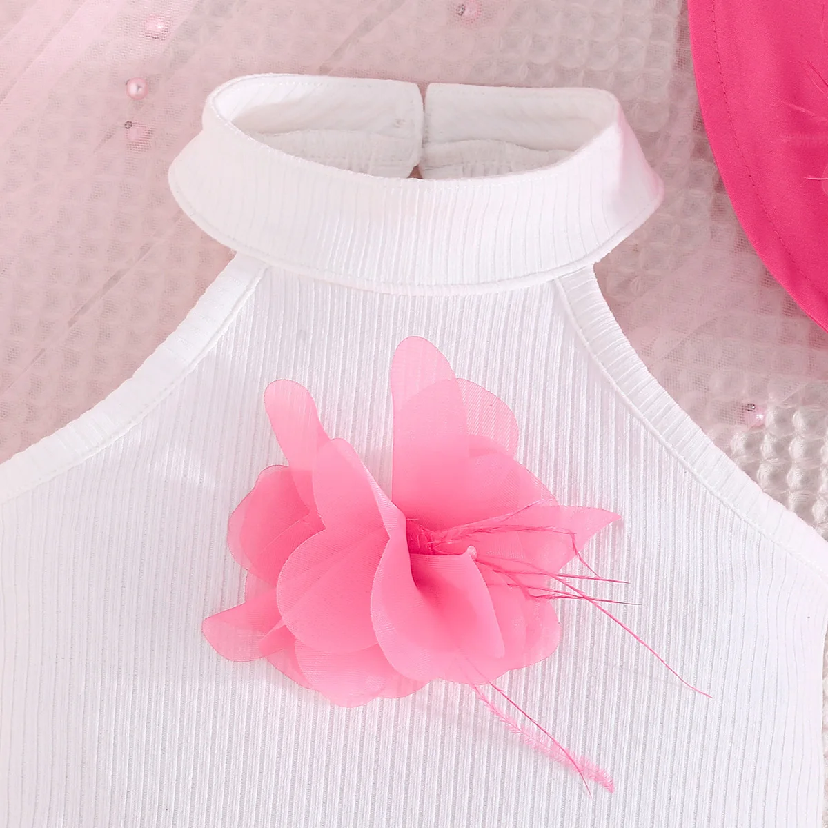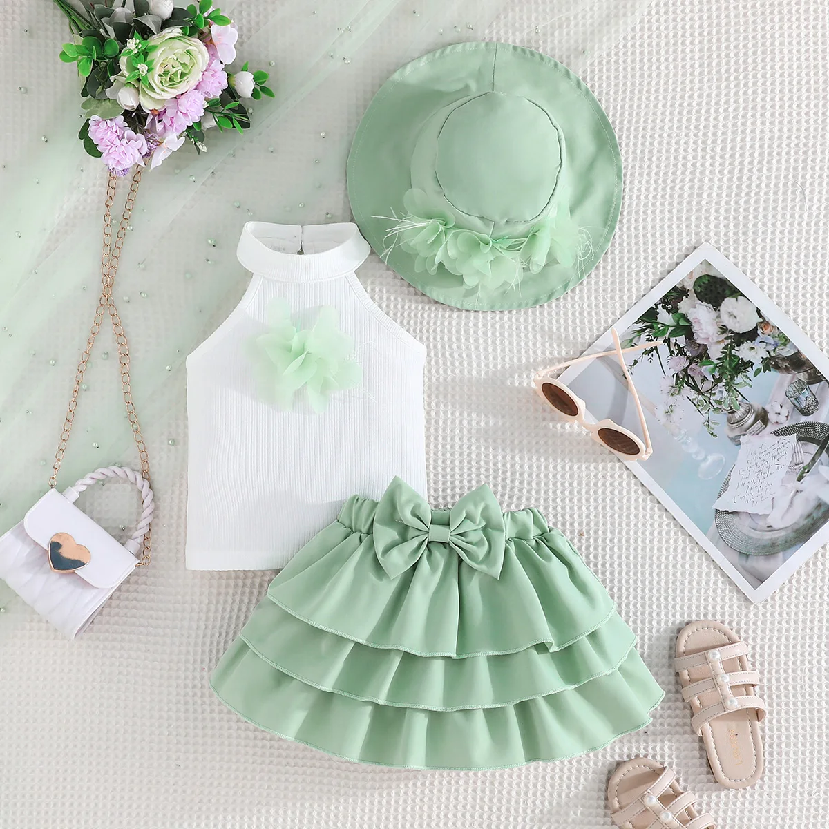 Children’s Clothing Girl Set Exquisite and Fashionable Sleeveless Flower Top and Bow Skirt With Hat Sweet Three Piece Set