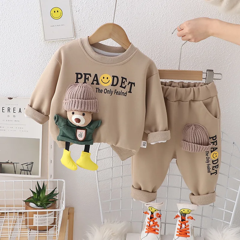 Children’s Clothing Set for Boys and Girls Winter Baby Stylish Sports Leisure Long Sleeved Hooded Sweatshirt+Pants Suit
