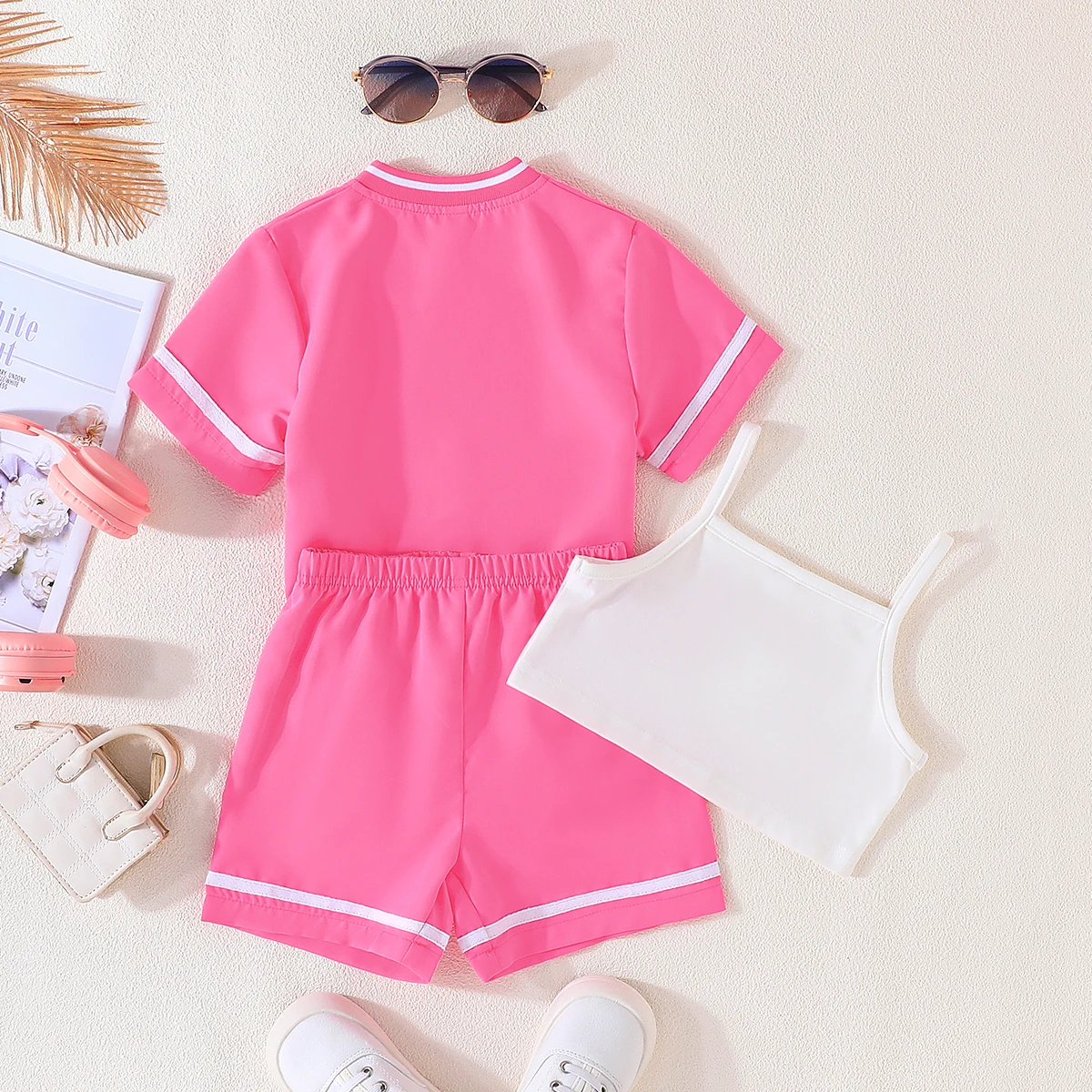 Children’s Clothing Set for Girls Aged 4-8 Short Sleeved Shirts Sleeveless Short Top Casual Shorts Fashion Three Piece Set