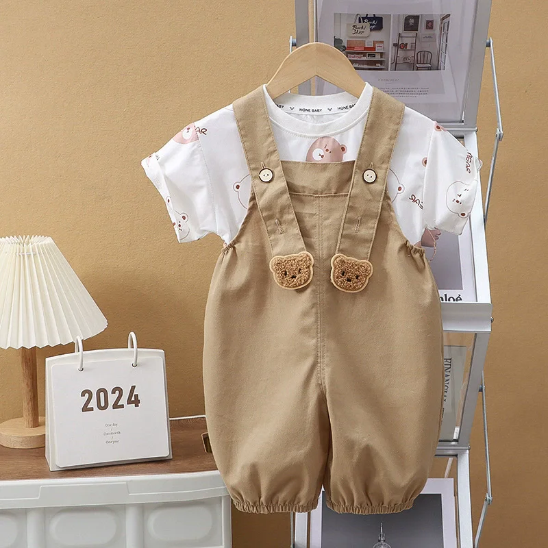 Children’s Summer Stylish Overalls Boys and Girls Baby Short-sleeved Overalls Suit 2026 Casual Thin Children’s Suit